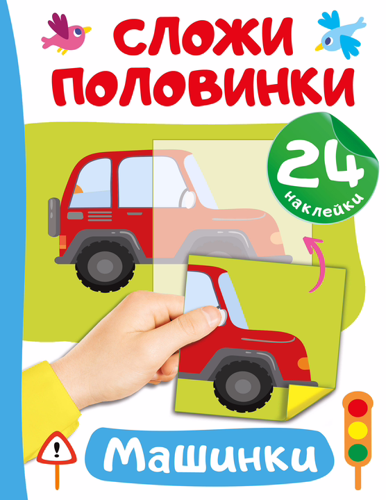 "Машинки" – это замечательная книга с яркими многоразовыми наклейками. Малыш подбирает к каждой картинке подходящую наклейку-половинку, а затем аккуратно наклеивает её. На первый взгляд кажется, что это легко. Но на самом деле ребёнок должен приложить очень много усилий! Если с первого раза не получится наклеить ровно – не беда! Ведь наклейку можно отклеить и легко повторить попытку снова. Занимаясь по книге, малыш узнает, какие бывают машины – седаны, внедорожники, джипы и так далее. А ещё юный ученик тренирует мелкую моторику и координацию движений – важные навыки для письма.