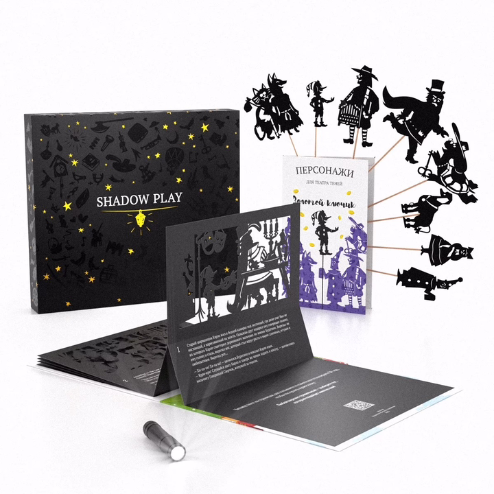 Подарочный набор прекрасно подходит для первой покупки и подарка. Уникальная, запатентованная конструкция, которая при открытии книги приводит страницы в вертикальное положение – идеально для теневого представления. Поставьте книгу на стол, на кровать или даже на колени – ей удобно пользоваться в в любом положении!
