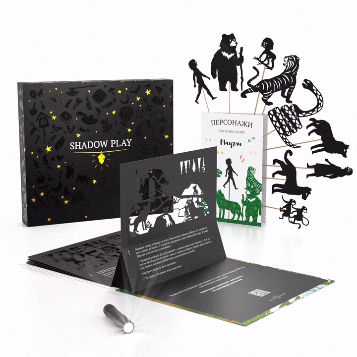 Подарочный набор прекрасно подходит для первой покупки и подарка. Уникальная, запатентованная конструкция, которая при открытии книги приводит страницы в вертикальное положение – идеально для теневого представления. Поставьте книгу на стол, на кровать или даже на колени – ей удобно пользоваться в в любом положении!