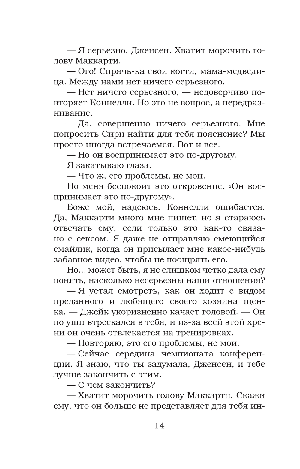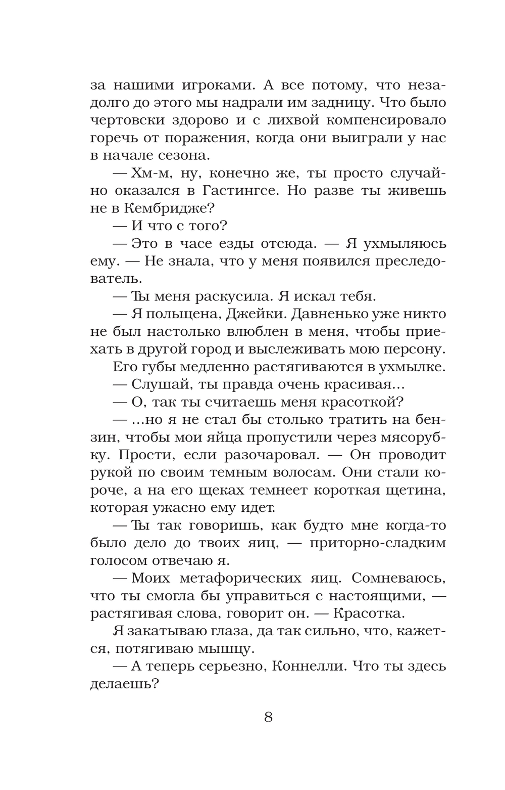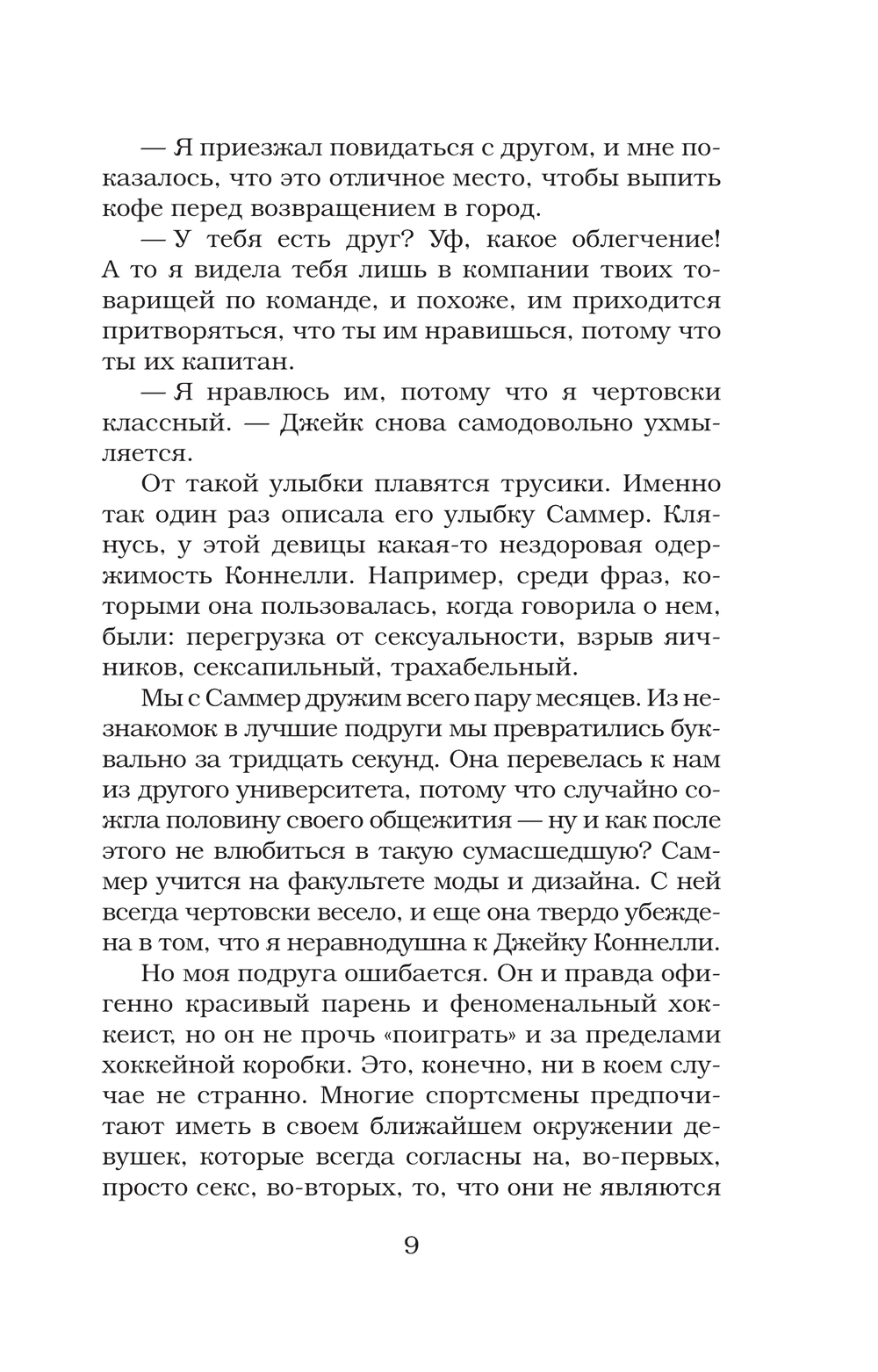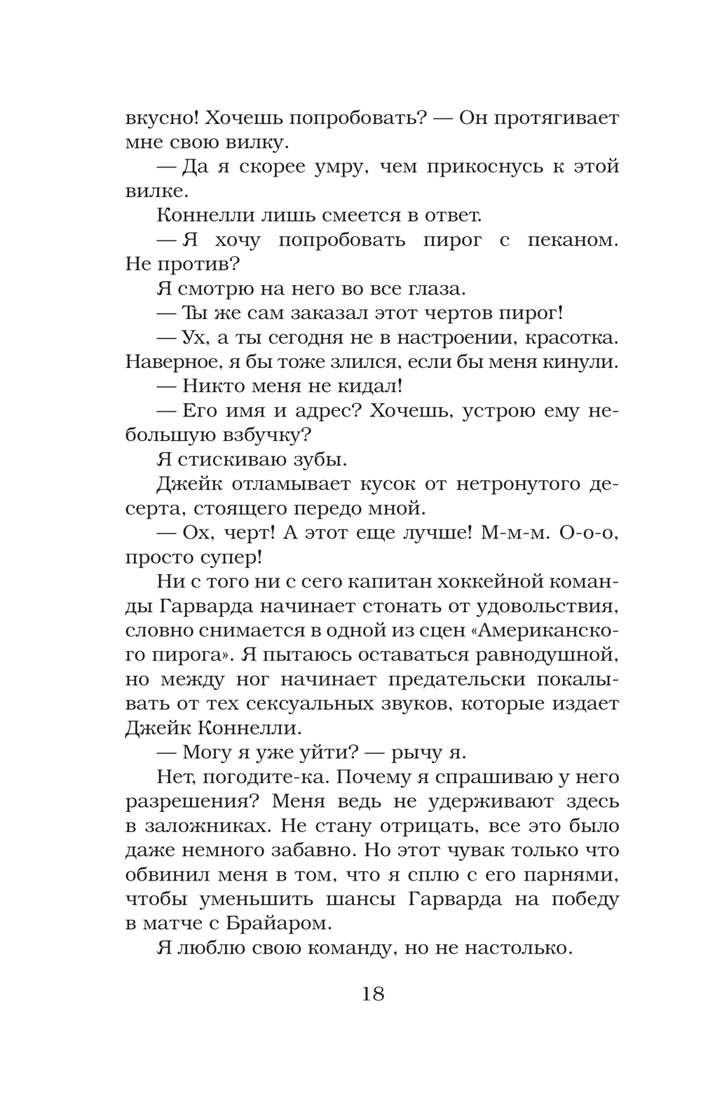 Например, с Джейком Коннелли. Он звезда команды Гарварда: самонадеянный, наглый и, на беду, слишком красивый. Но судьба зла, потому что мне нужна его помощь. Только так я наконец смогу стать стажёром на спортивном канале, а этот засранец не собирается облегчить мне задачу.