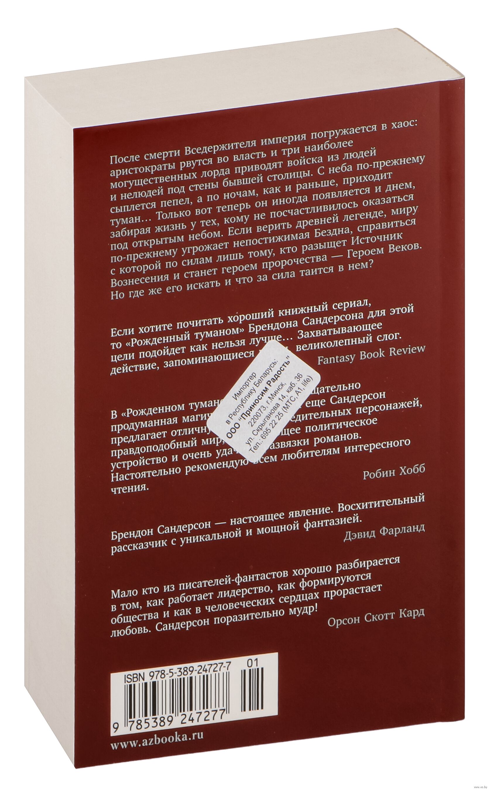После смерти Вседержителя империя погружается в хаос: аристократы рвутся во власть и три наиболее могущественных лорда приводят войска из людей и нелюдей под стены бывшей столицы. С неба по-прежнему сыплется пепел, а по ночам, как и раньше, приходит туман... Только вот теперь он иногда появляется и днем, забирая жизнь у тех, кому не посчастливилось оказаться под открытым небом. Если верить древней легенде, миру по-прежнему угрожает непостижимая Бездна, справиться с которой по силам лишь тому, кто разыщет Источник Вознесения и станет героем пророчества – Героем Веков. Но где же его искать и что за сила таится в нем?
