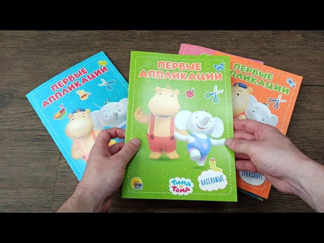 "Первые аппликации" – эта серия развивающих брошюр с героями мультсериала "Тима и Тома" познакомит вашего малыша с жителями моря, видами транспорта, насекомыми и другими милыми картинками.