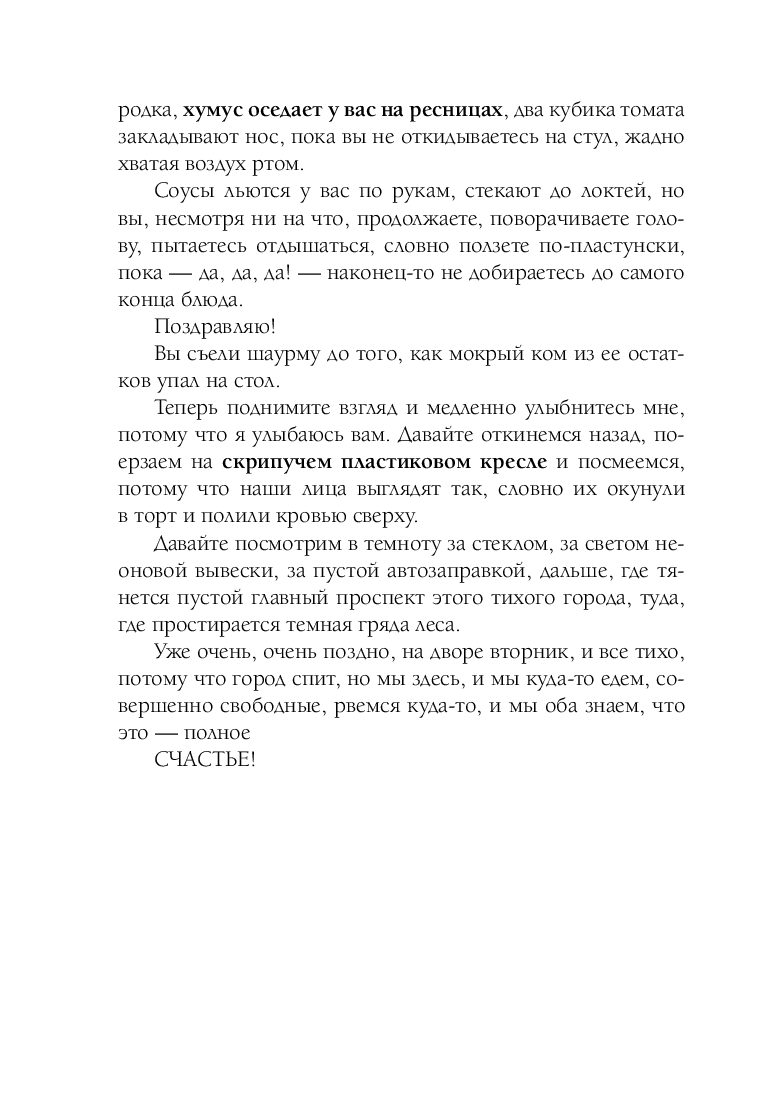 В книге вы найдете пространства для заметок. Следуя призыву автора, мы предлагаем вам стать соавторами этой книги и дополнить ее своими зарисовками о счастье. Менять фокус, видеть прекрасное в привычном, удивляться – вот оно, счастье!