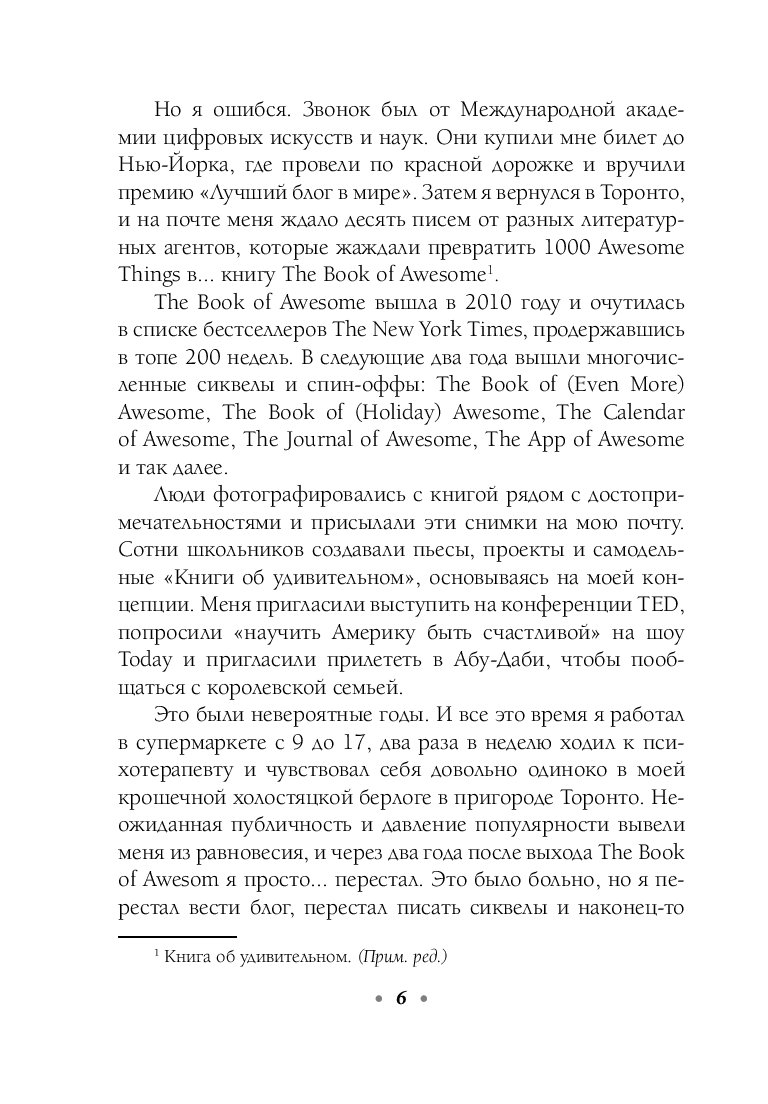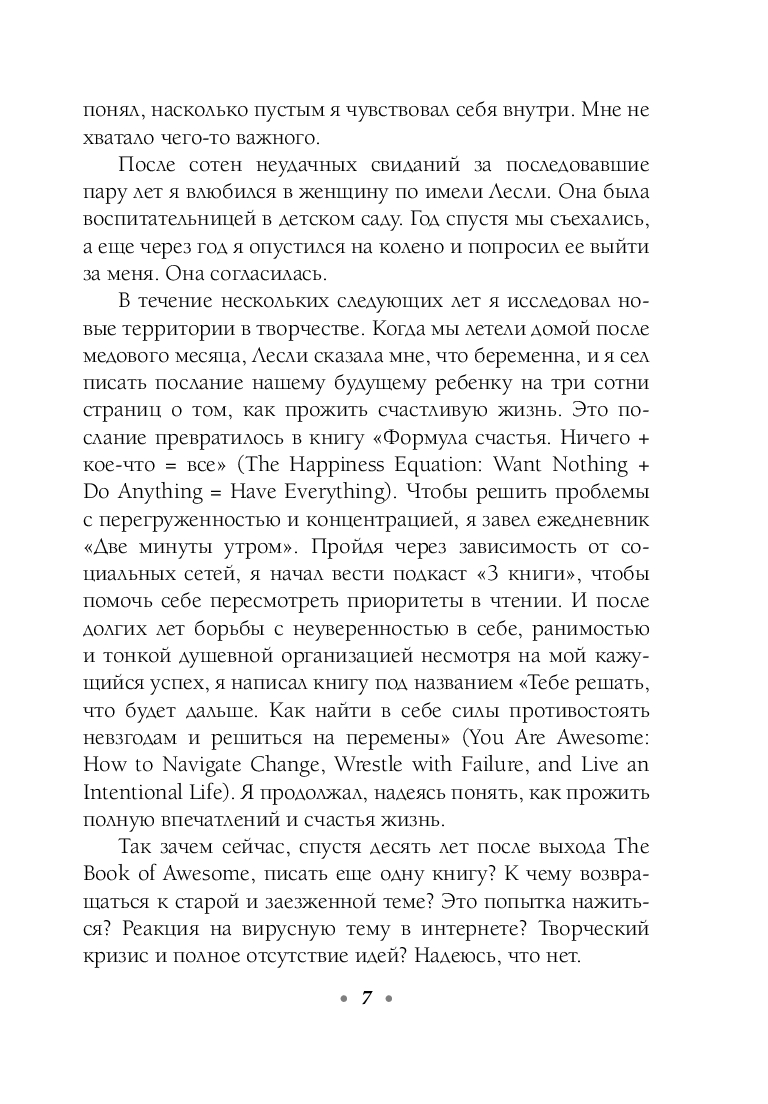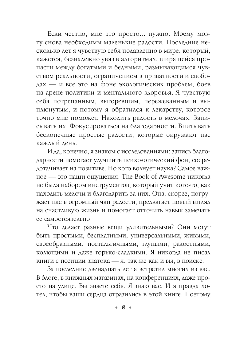 Автору этой книги довелось пройти через тяжелые испытания: смерть друга, расставание с возлюбленной, затяжная депрессия. Чтобы справиться с происходящим, он начал искать поводы для радости в каждом дне и писать о своих открытиях и наблюдениях в личном блоге, который очень быстро стал популярным.