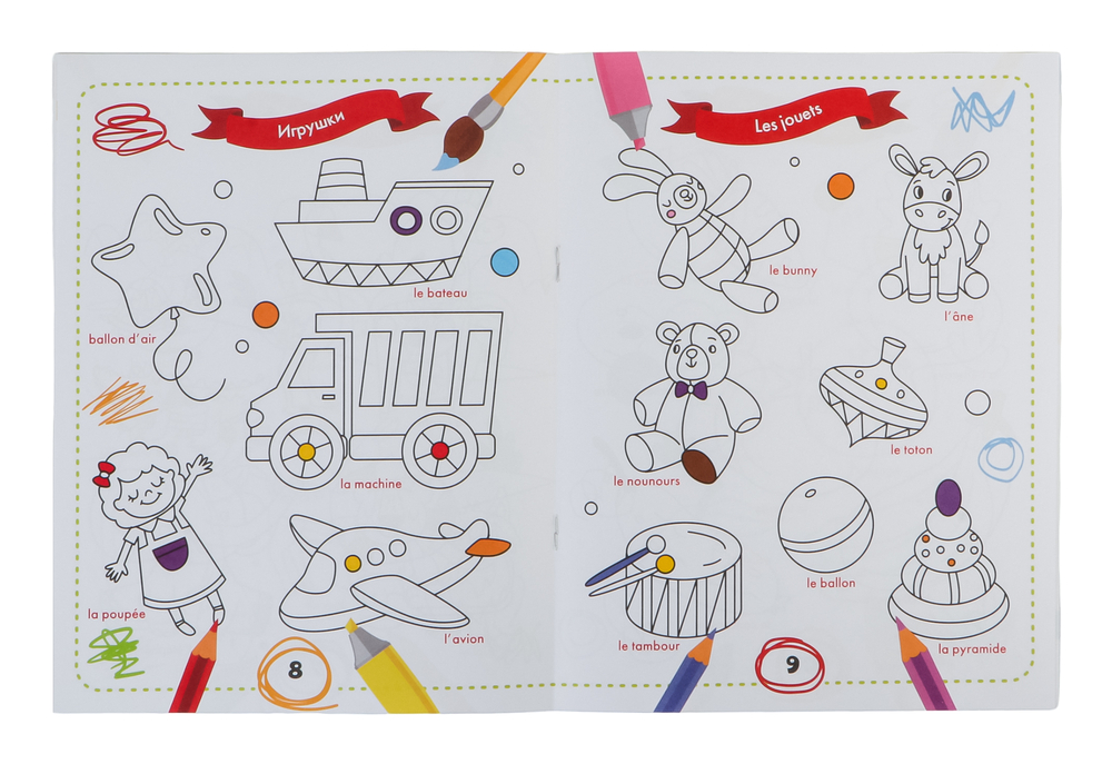 Раскрась и выучи слова: французский для малышей