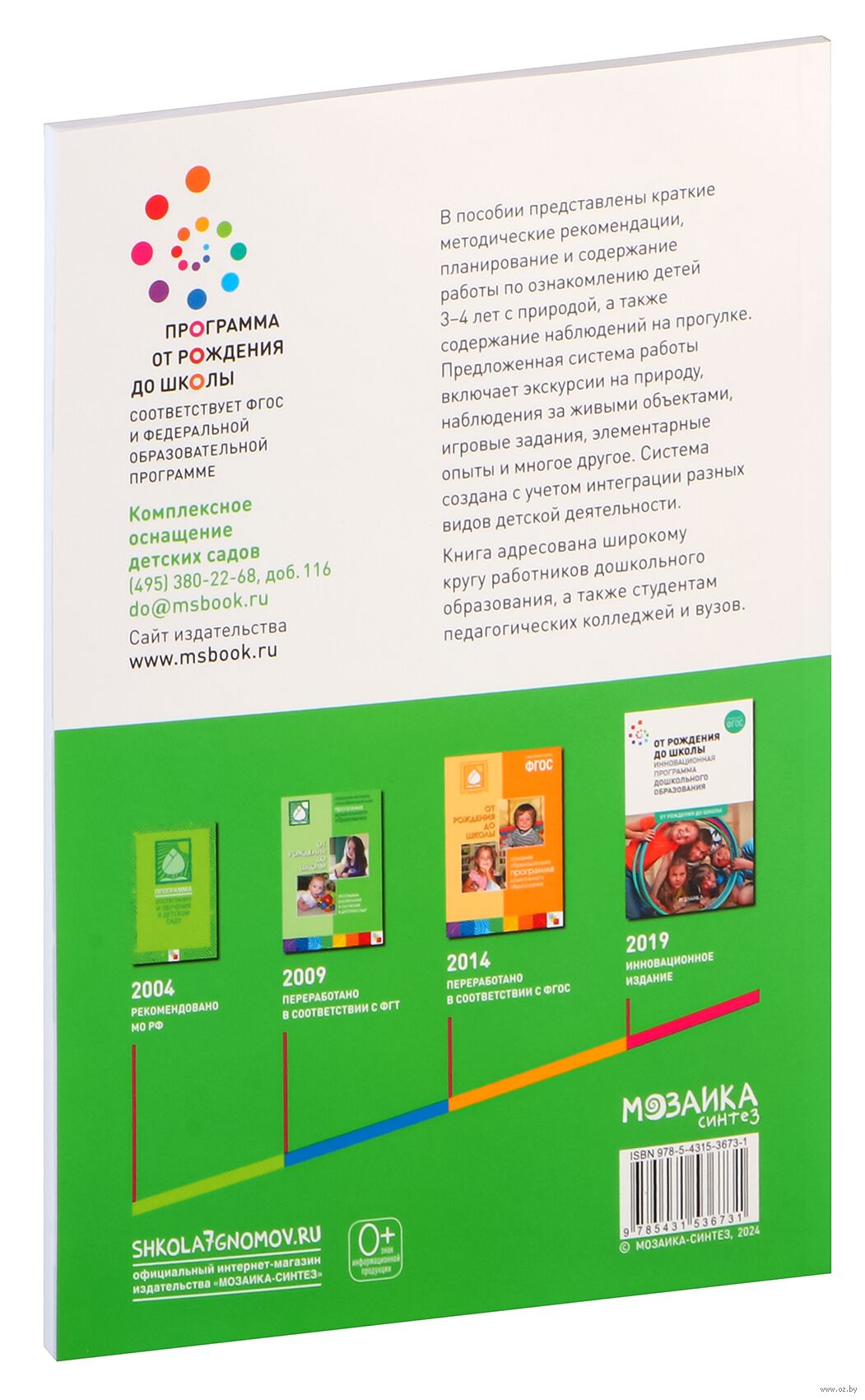 В пособии представлены краткие методические рекомендации, планирование и содержание работы по ознакомлению детей 3-4 лет с природой, а также содержание наблюдений на прогулке. Предложенная система работы включает экскурсии на природу, наблюдения за живыми объектами, игровые задания, элементарные опыты и многое другое. Система создана с учетом интеграции разных видов детской деятельности.