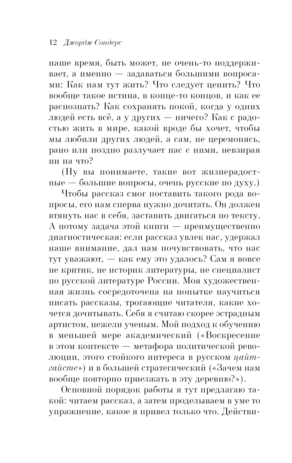 "Когда читаешь этих авторов, они тебя меняют, а мир вокруг словно бы начинает излагать другую, гораздо более интересную, историю – историю, в какой можно сыграть значимую роль и где на читателя возложена ответственность", – пишет во вступлении сам Сондерс.