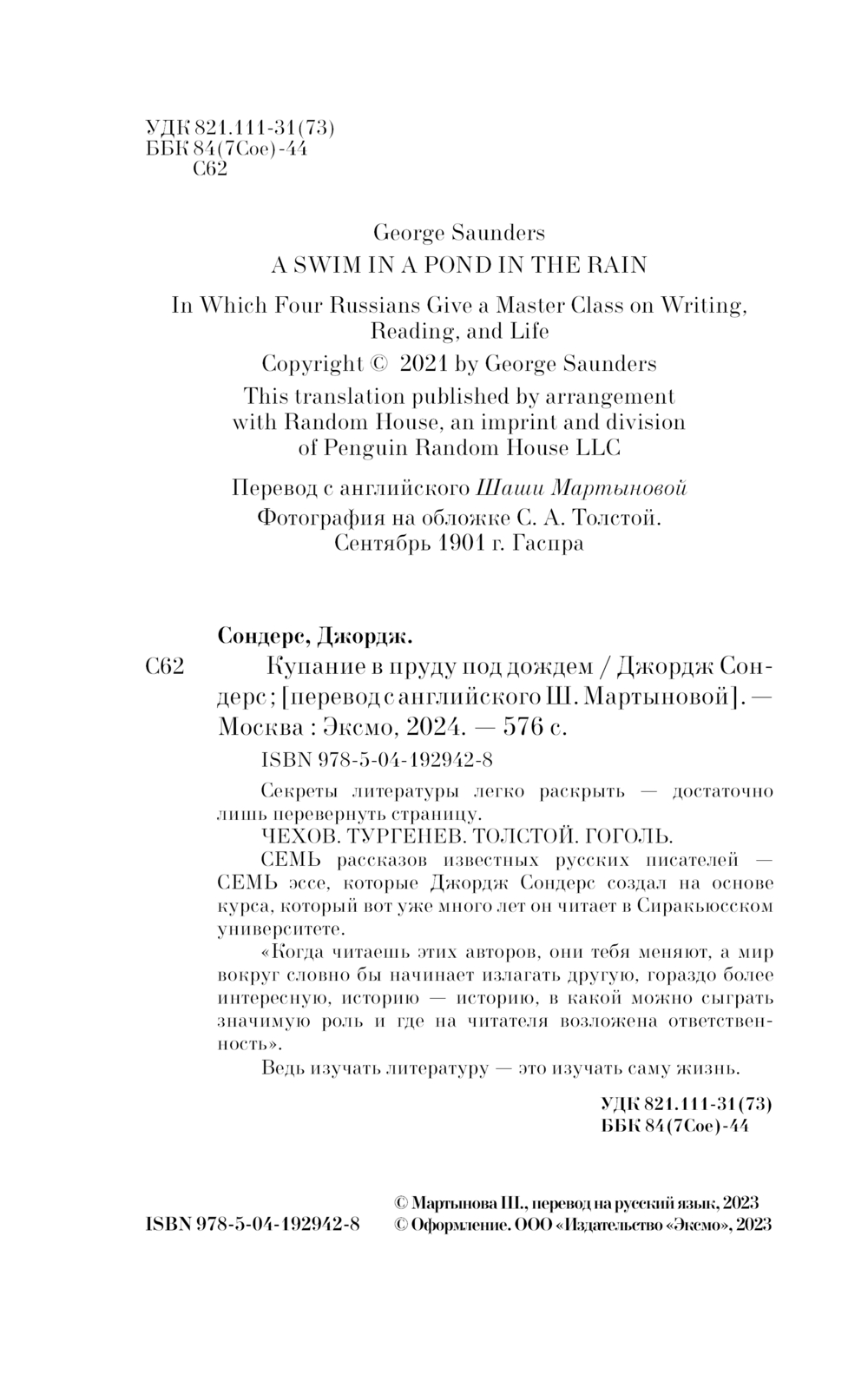 | Название в оригинале | A Swim in a Pond in the Rain: In Which Four Russians Give a Master Class on Writing, Reading, and Life |