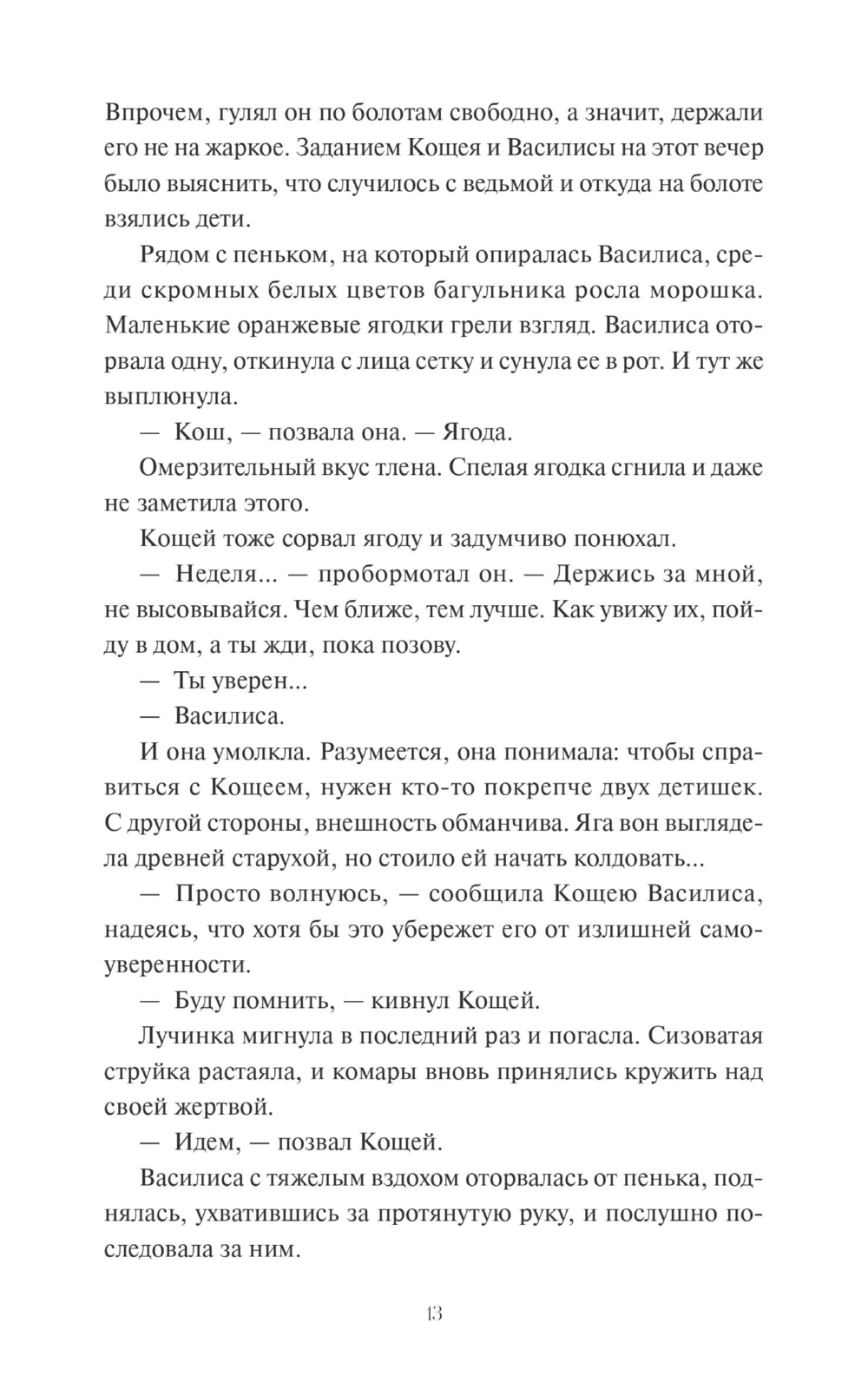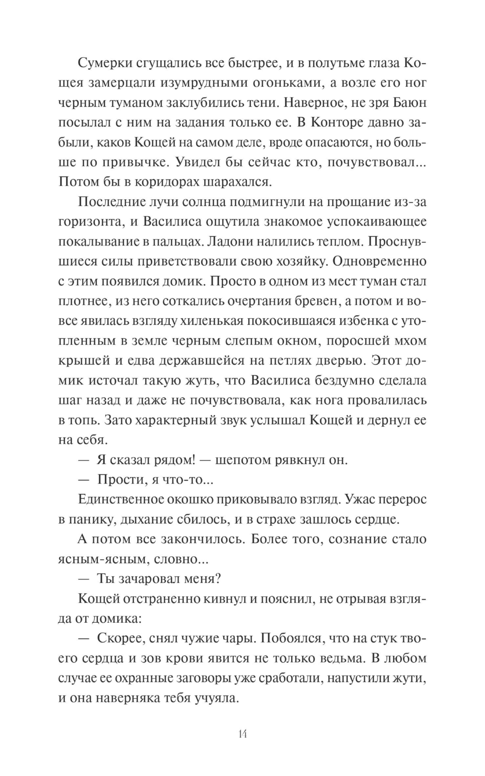Прекрасная книга о поисках себя и своего места в жизни, об отношениях и гармонии - о любви, в которой не нужно жертвовать, а просто принимать партнера и ценить время, проведенное вместе. Антураж с героями русских народных сказок, магией и приключениями - замечательная идея, чтобы психологическая составляющая не утомляла. Рекомендую для отдыха и исцеления.