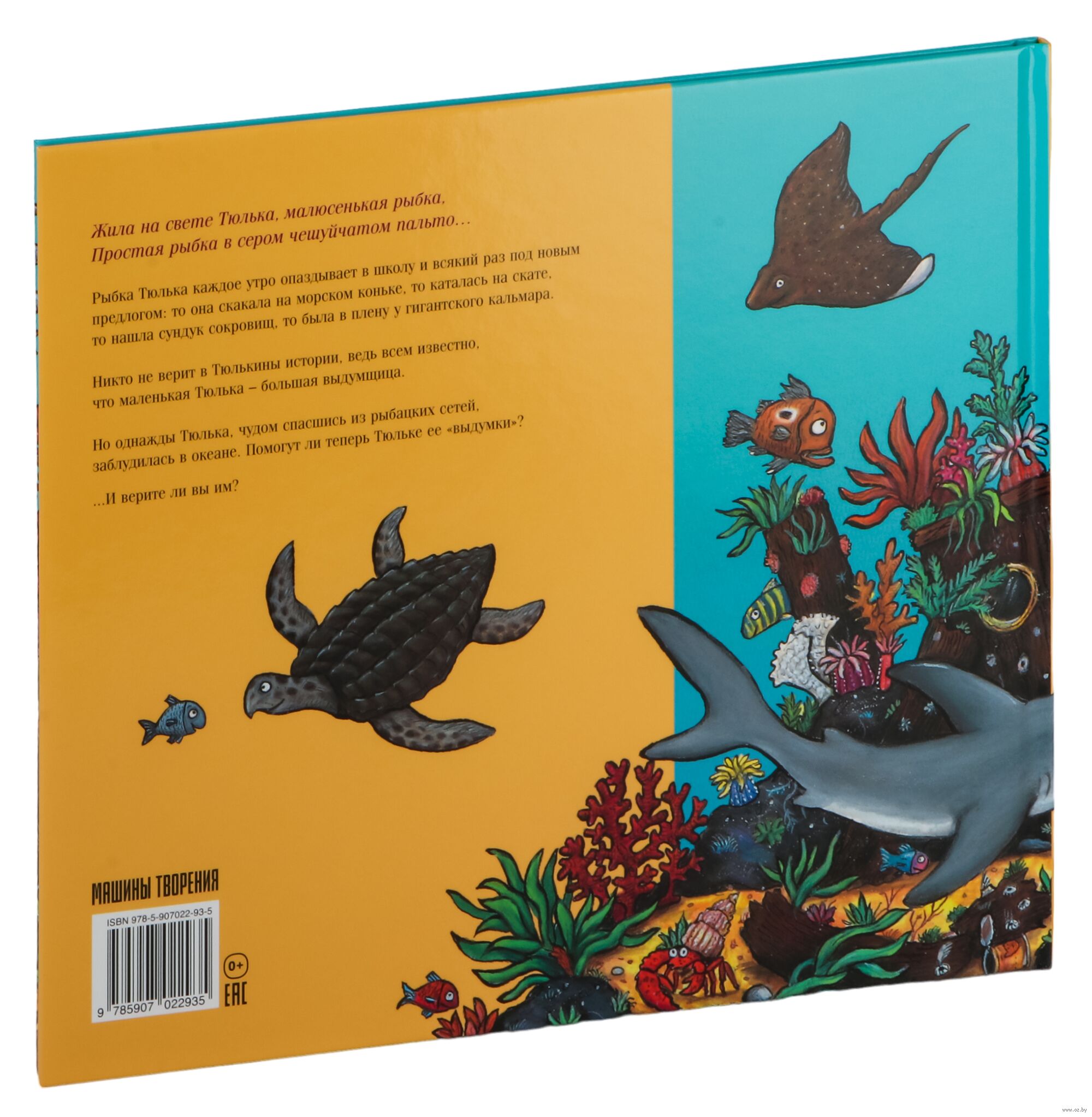 Рыбка Тюлька каждое утро опаздывает в школу и всякий раз под новым предлогом: то она скакала на морском коньке, то каталась на скате, то нашла сундук сокровищ, то была в плену у гигантского кальмара. Никто не верит в Тюлькины истории, ведь всем известно, что маленькая Тюлька – большая выдумщица. Но однажды Тюлька, чудом спасшись из рыбацких сетей, заблудилась в океане. Помогут ли теперь Тюльке ее "выдумки"? ...И верите ли вы им?