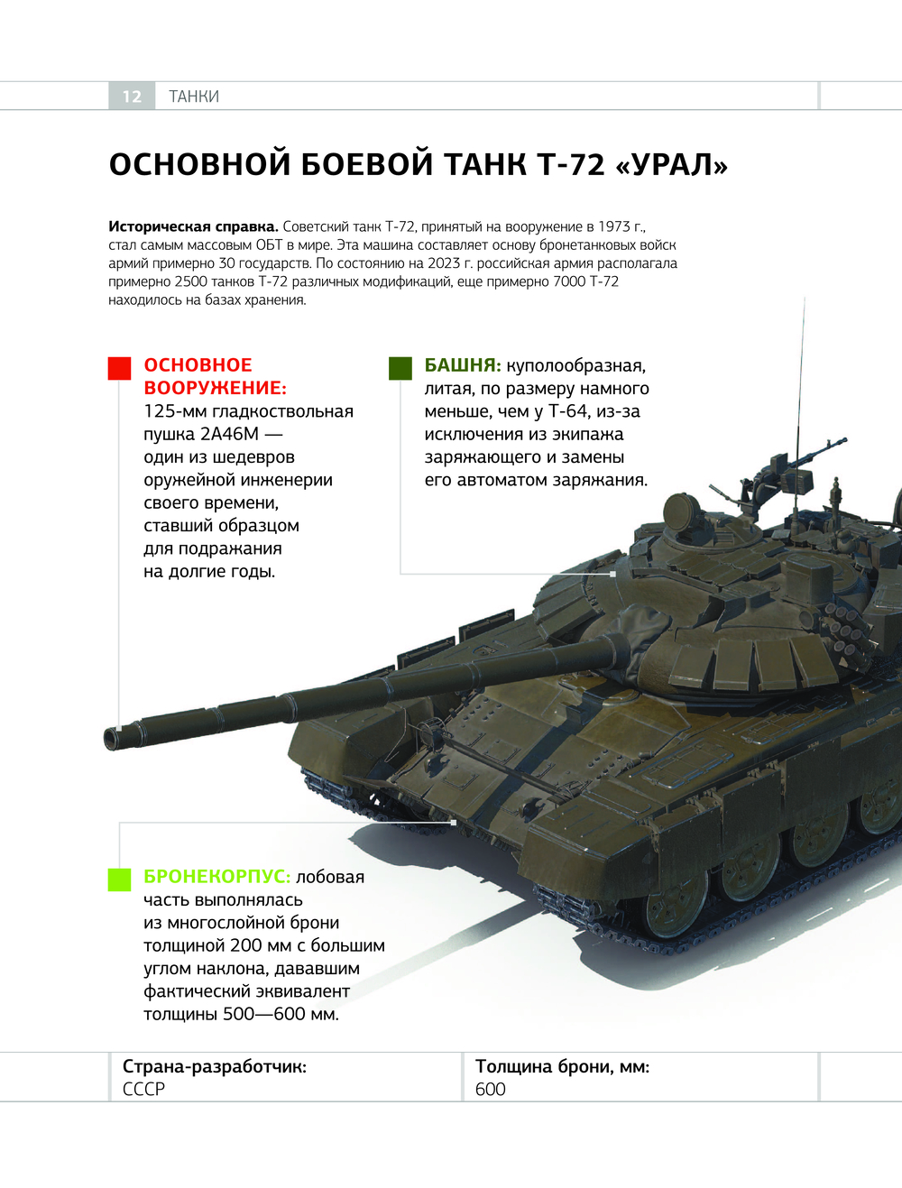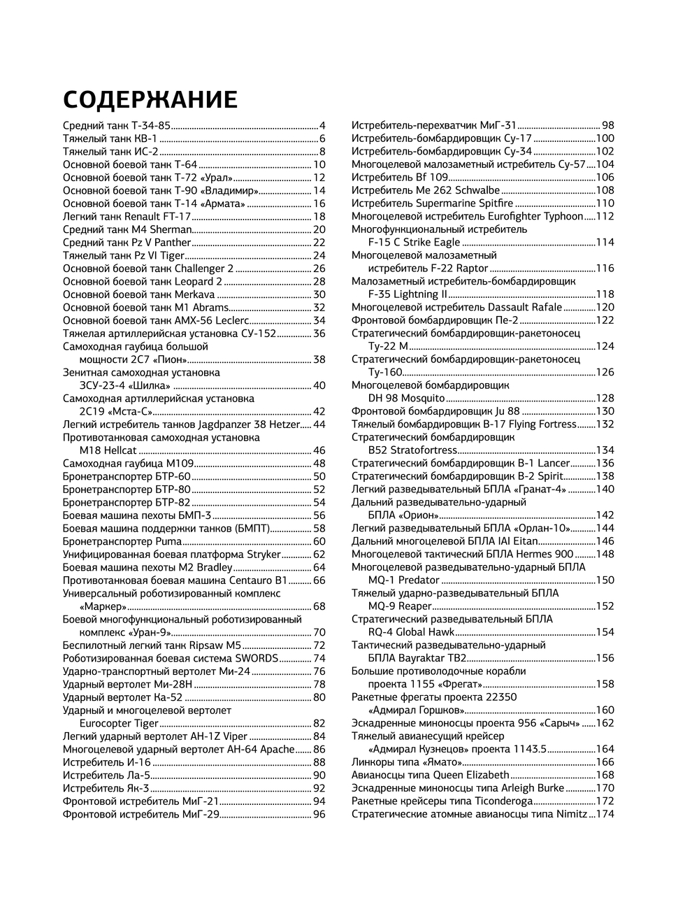 По каждому образцу военной техники приводятся справочные сведения об истории его создания и особенностях боевого применения, а также основные тактико-технические характеристики.