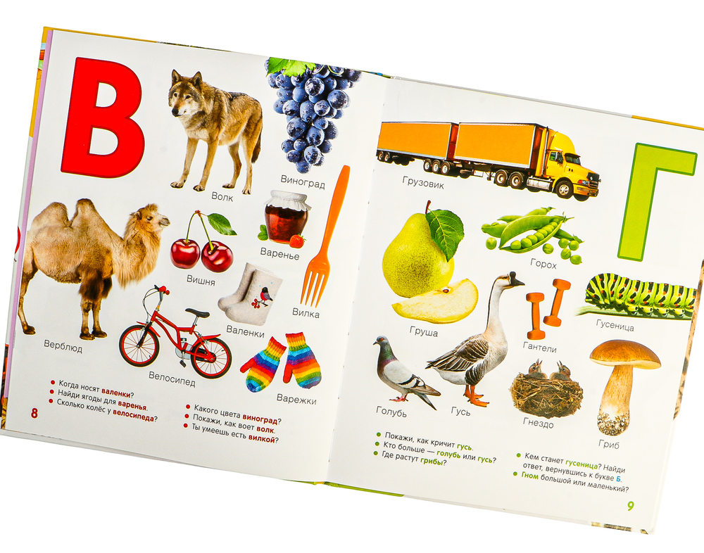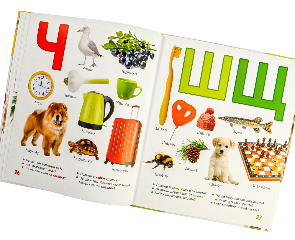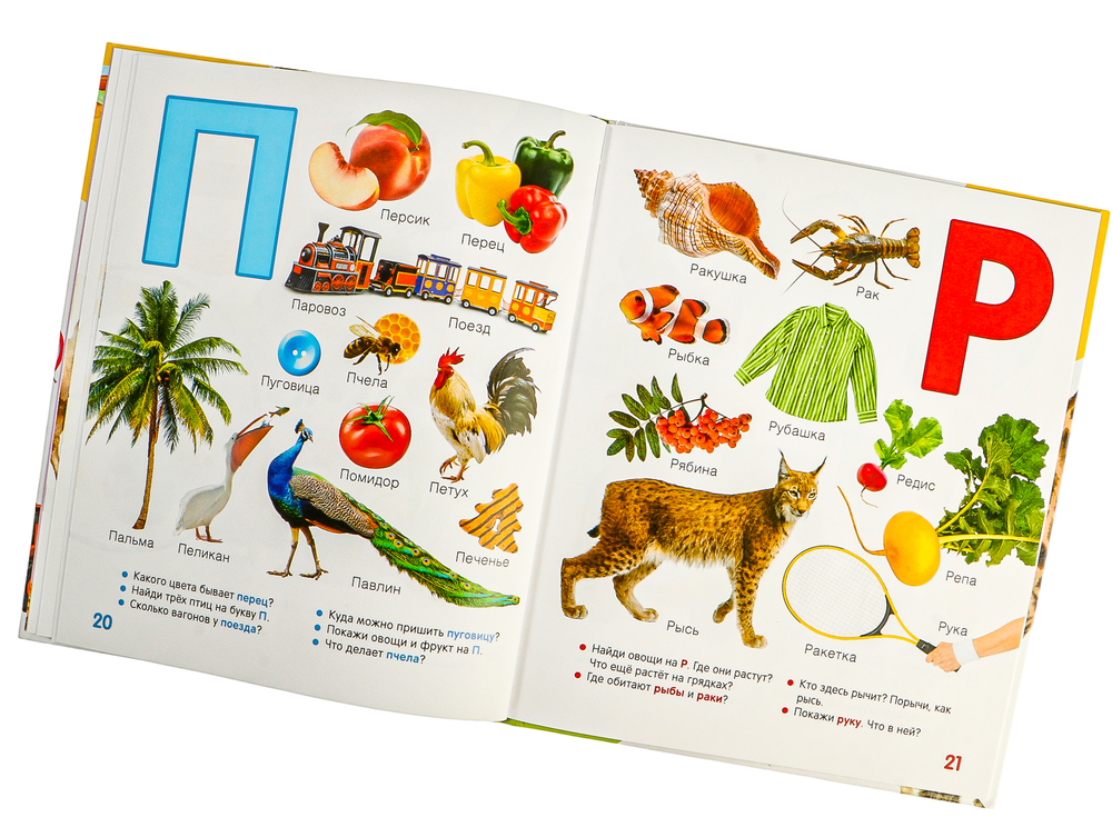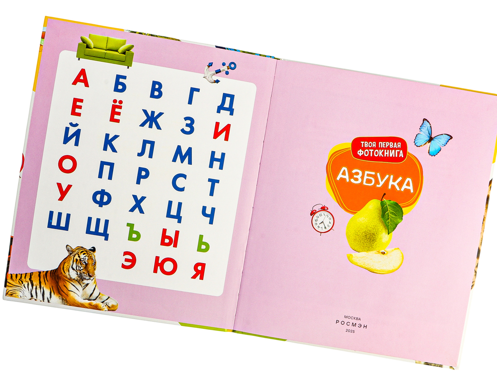 В этой яркой и интересной книге собрано более 250 фотографий, которые познакомят ребенка с окружающим миром, назовут и покажут самые разные предметы и при этом дадут первое представление о русском алфавите и его 33 буквах. Ребенок выучит много новых слов, поймет соотношение звука и буквы и сделает первый шаг к обучению чтению. На каждой странице малышей ждут интересные вопросы и задания, развивающие логику, внимание, расширяющие кругозор.