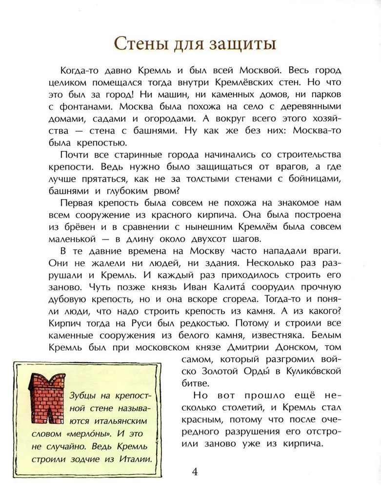 Полная красочных истории и легенд книга о Московском Кремле рассказывает о том, как он возник и перестраивался. Назначение и особенности каждой из башен Кремля, связанные с ними исторические имена, события и тайны – всё это стало предметом увлечённого и обстоятельного повествования. Теперь, совершая прогулку вдоль Кремлёвской стены, вы сразу же сориентируетесь на месте.