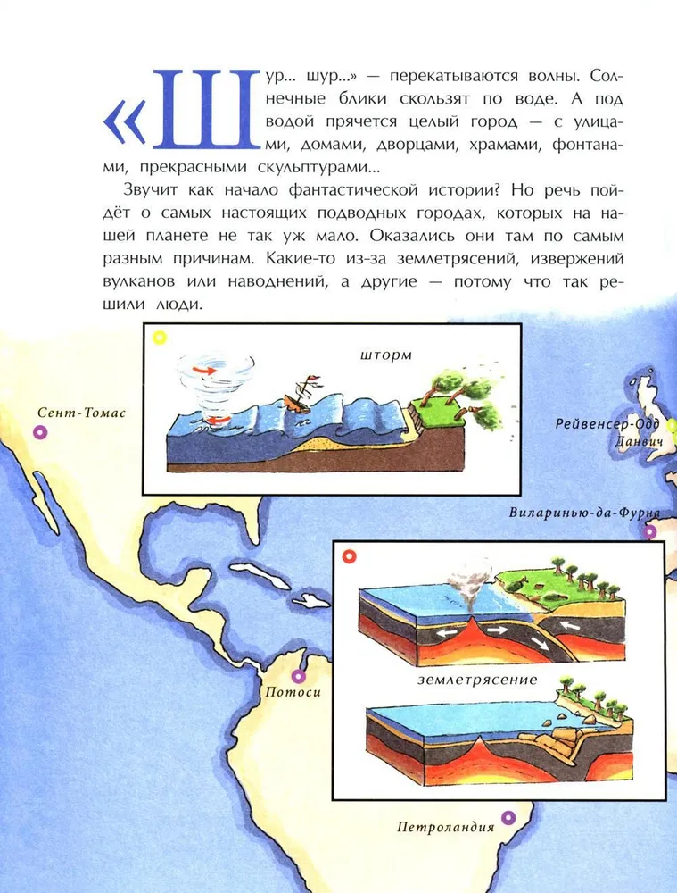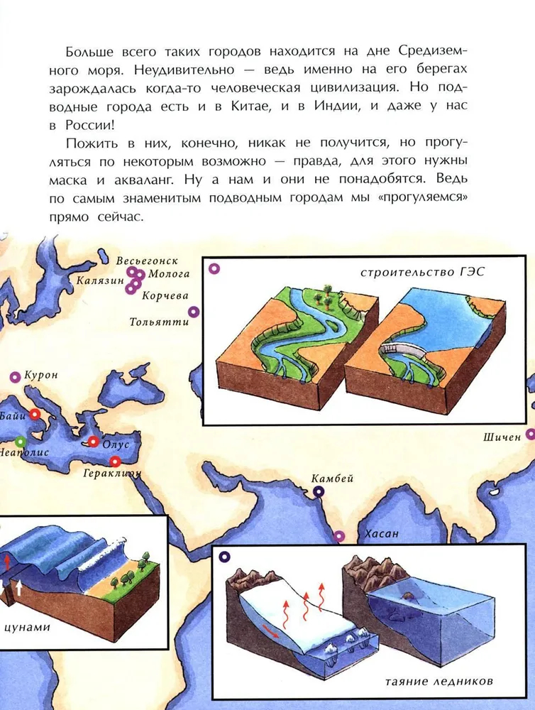 Под водой прячутся целые города – с улицами, домами, храмами и фонтанами. Некоторые из них ушли под воду из-за землетрясений, извержений вулканов или наводнений, другие – потому, что так решили люди. Для нашей подводной прогулки не понадобятся маска и акваланг, мы отправимся туда по страницам этой книги и побываем даже в легендарной Атлантиде!