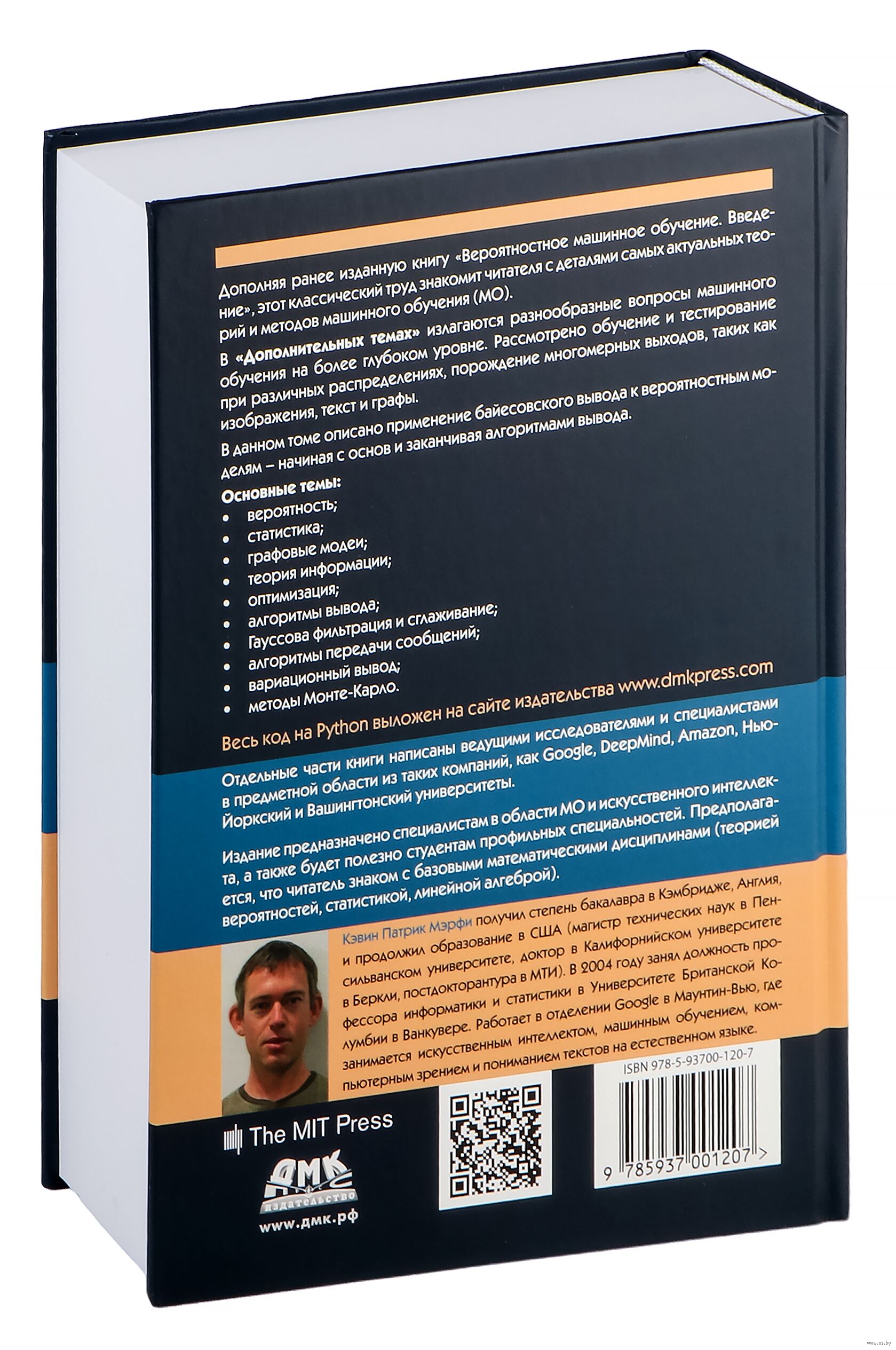 Дополняя ранее изданную книгу "Вероятностное машинное обучение. Введение", этот классический труд знакомит читателя с деталями самых актуальных теорий и методов машинного обучения, включая глубокие порождающие модели, графовые модели, байесовский вывод, обучение с подкреплением и причинность. В этом томе глубокое обучение излагается в контексте более широкого статистического контекста, а подходы к глубокому обучению унифицированы с подходами к вероятностному моделированию и выводу. Рассматривается порождение многомерных выходов, например изображений, текста и графов. Обсуждаются методы проникновения в существо данных, основанные на моделях с латентными величинами. Уделено внимание обучению и тестированию при различных распределениях. Исследуется, как использовать вероятностные модели и вывод для каузального вывода и принятия решений.