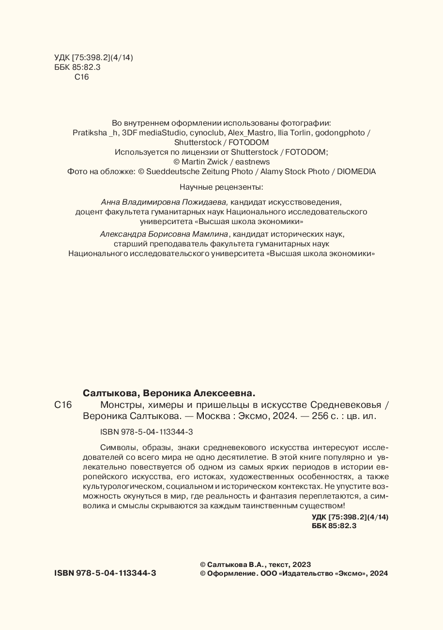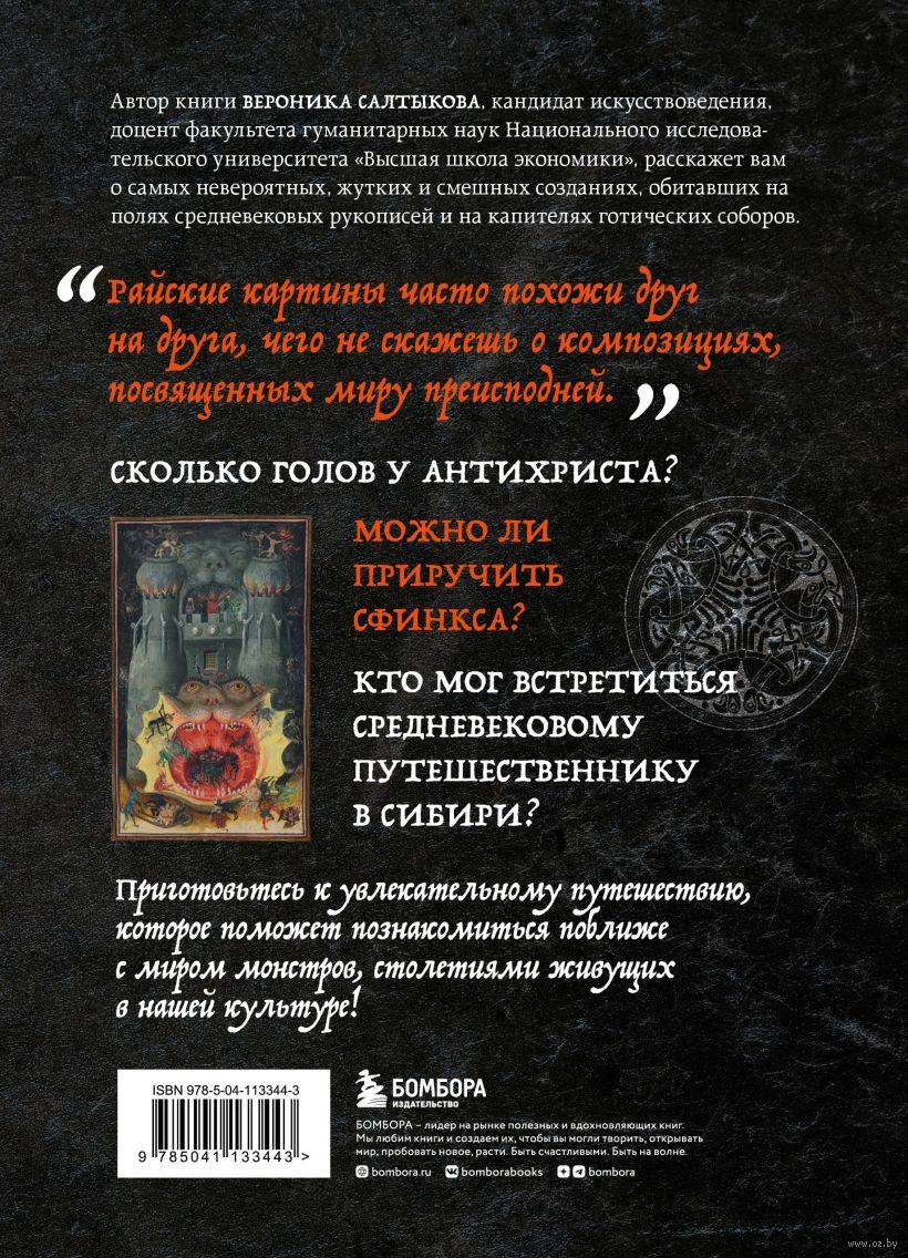 Страшно интересное исследование Средневековья! "Монстры, химеры и пришельцы в искусстве Средневековья" – это настоящее сокровище для всех любителей искусства и истории. Автор книги, доцент высшей школы экономики и талантливый искусствовед Вероника Салтыкова, предлагает нам погрузиться в мир уникальных гравюр и изображений, которые полны страшных и загадочных образов того времени. Сколько голов у антихриста? Можно ли приручить сфинкса? Для чего рождаются монстры? Узнайте ответы на эти и многие другие вопросы, совершив настоящее путешествие в прошлое и раскрыв магию и загадки Средневековья!