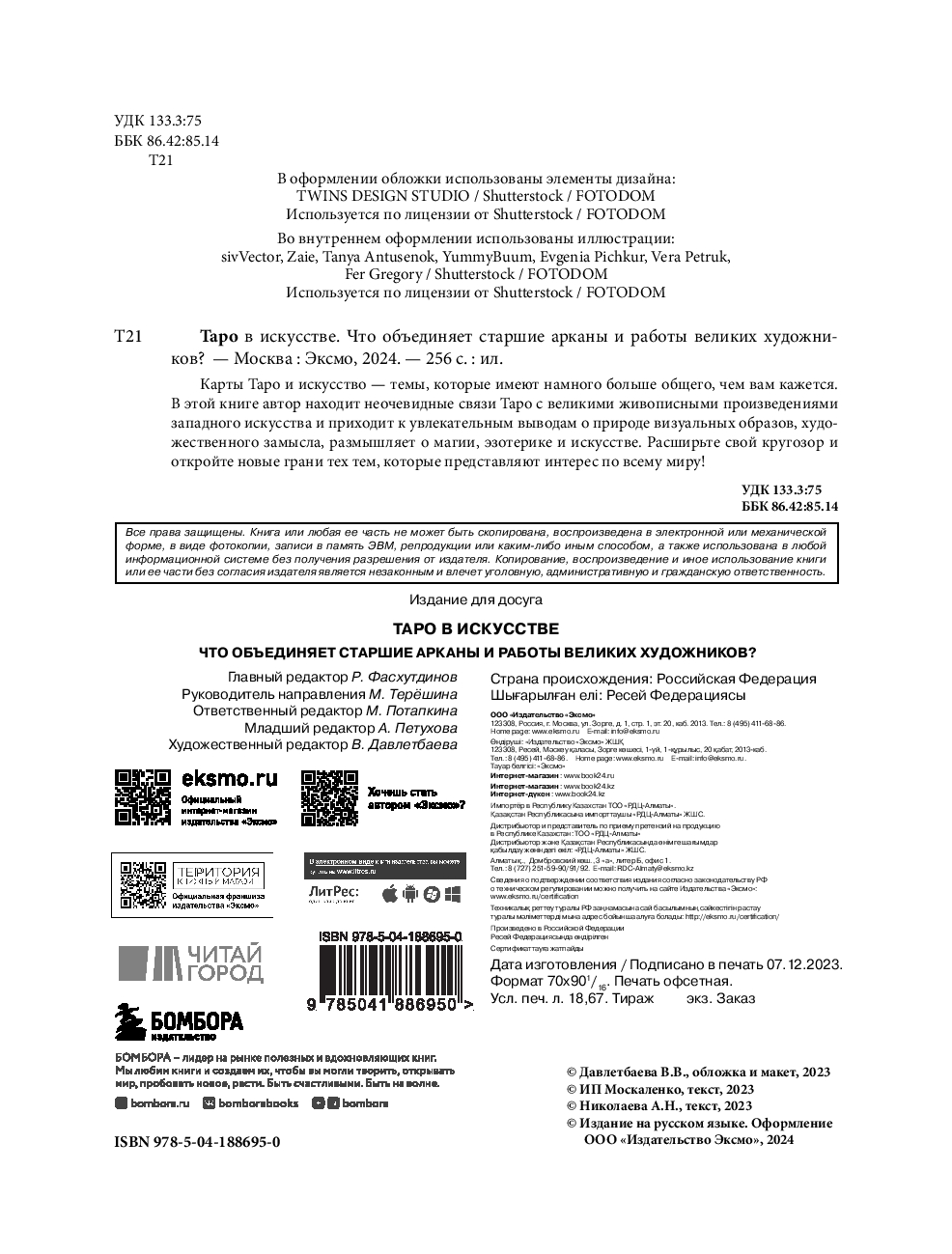 Карты Таро и искусство – темы, которые имеют намного больше общего, чем вам кажется. В этой книге, автор находит неочевидные связи Таро с великими живописными произведениями западного искусства, и приходит к увлекательным выводам о природе визуальных образов, художественного замысла, размышляет о магии, эзотерике и искусстве. Расширьте свой кругозор и откройте новые грани тех тем, которые представляют интерес по всему миру!