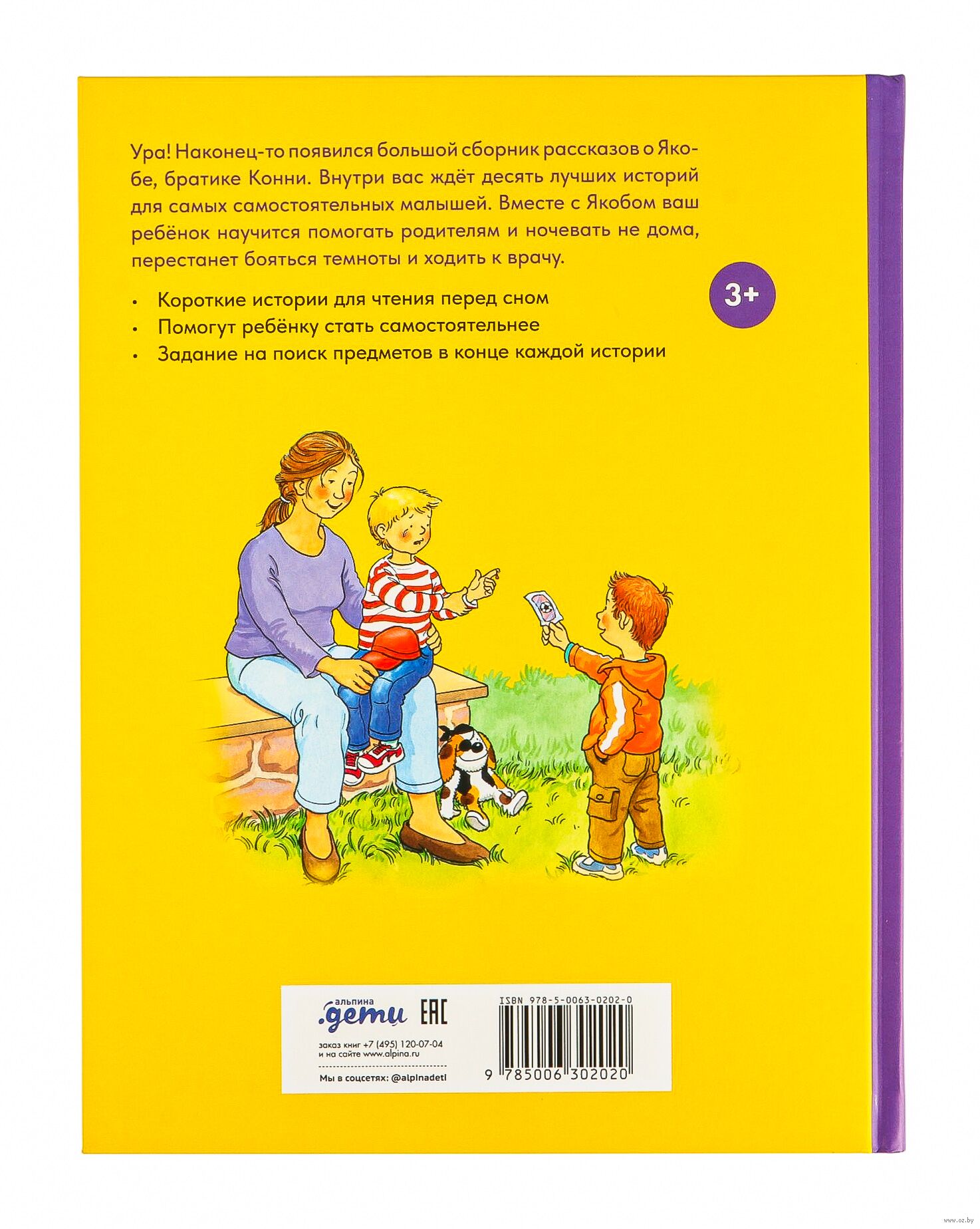 Ура! Наконец-то появился большой сборник рассказов о Якобе, братике Конни. Внутри вас ждет десять лучших историй для самых самостоятельных малышей. Вместе с Якобом ваш ребенок научится помогать родителям и ночевать не дома, перестанет бояться темноты и ходить ко врачу.