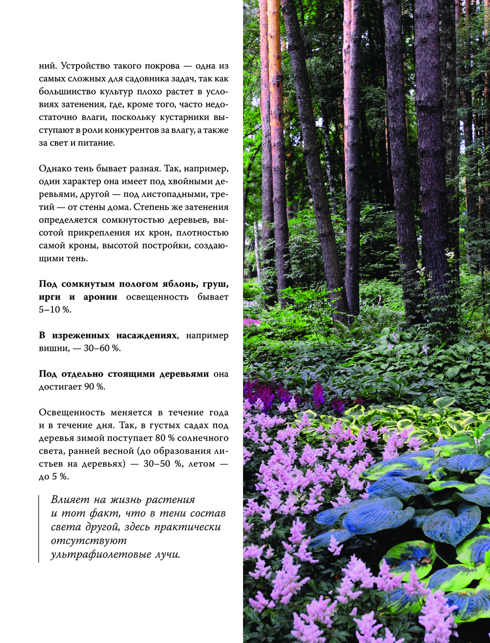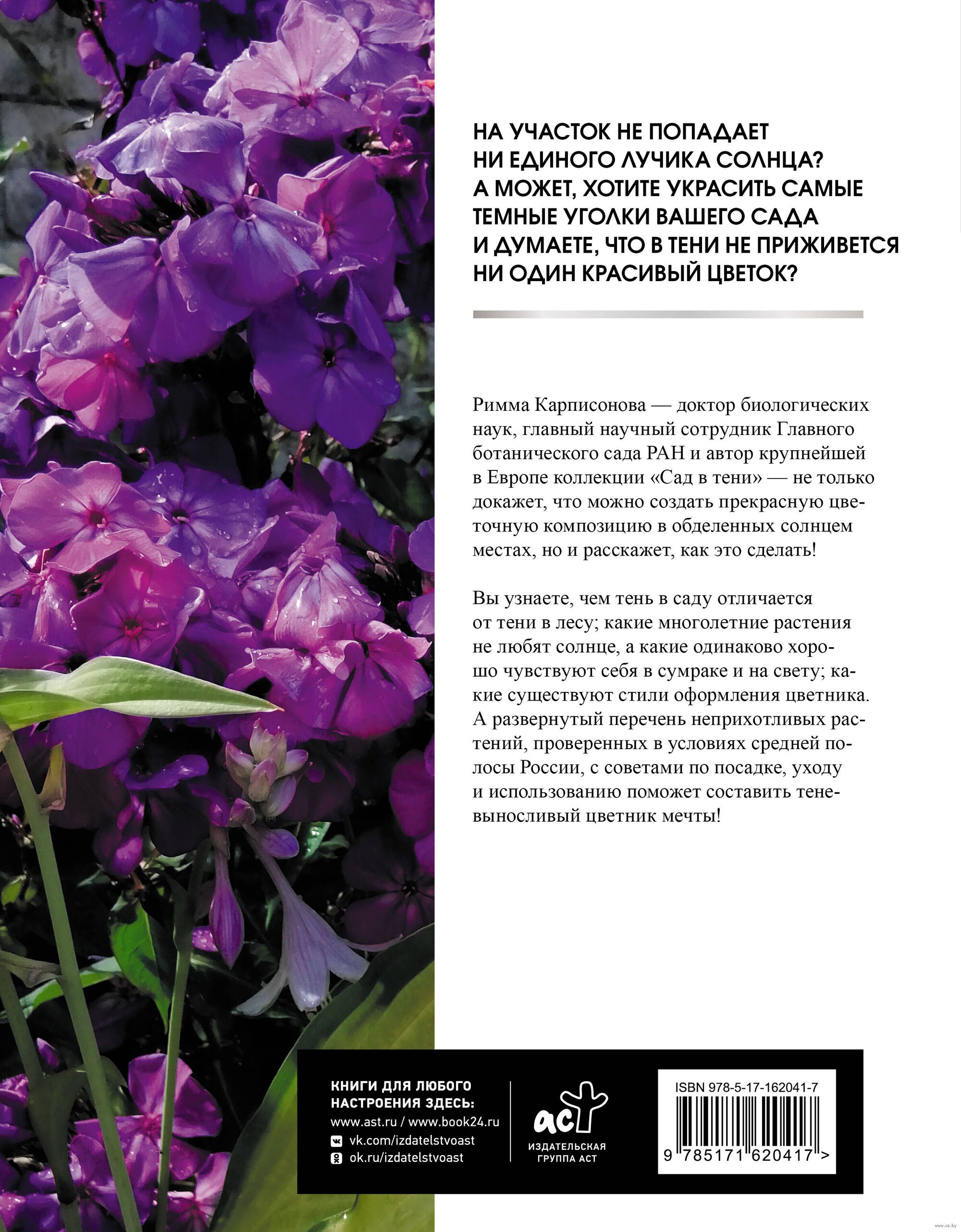 Вы узнаете, чем тень в саду отличается от тени в лесу; какие многолетние растения не любят солнце, а какие одинаково хорошо чувствуют себя в сумраке и на свету; какие существуют стили оформления цветника. А развернутый перечень неприхотливых растений, проверенных в условиях средней полосы России, с советами по посадке, уходу и использованию поможет составить теневыносливый цветник мечты!