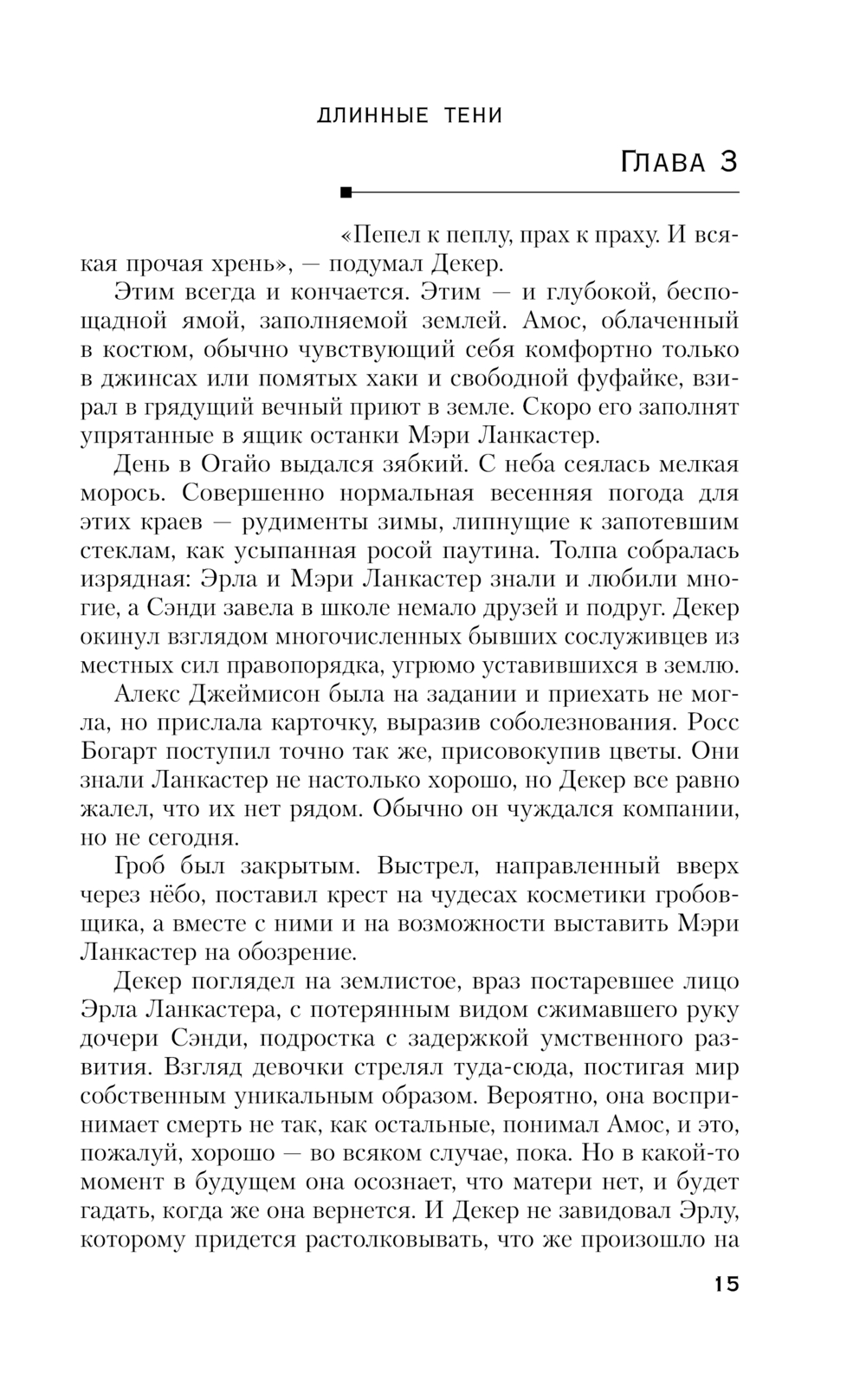 Но почти сразу Декер понимает: дело гораздо сложнее, чем кажется. Почему судья и ее телохранитель были убиты совершенно по-разному и в разных частях дома? Почему охрану осуществлял сотрудник частной компании, а не федеральный маршал? Зачем убийца запихнул ему в глотку денежные купюры далекой европейской страны?