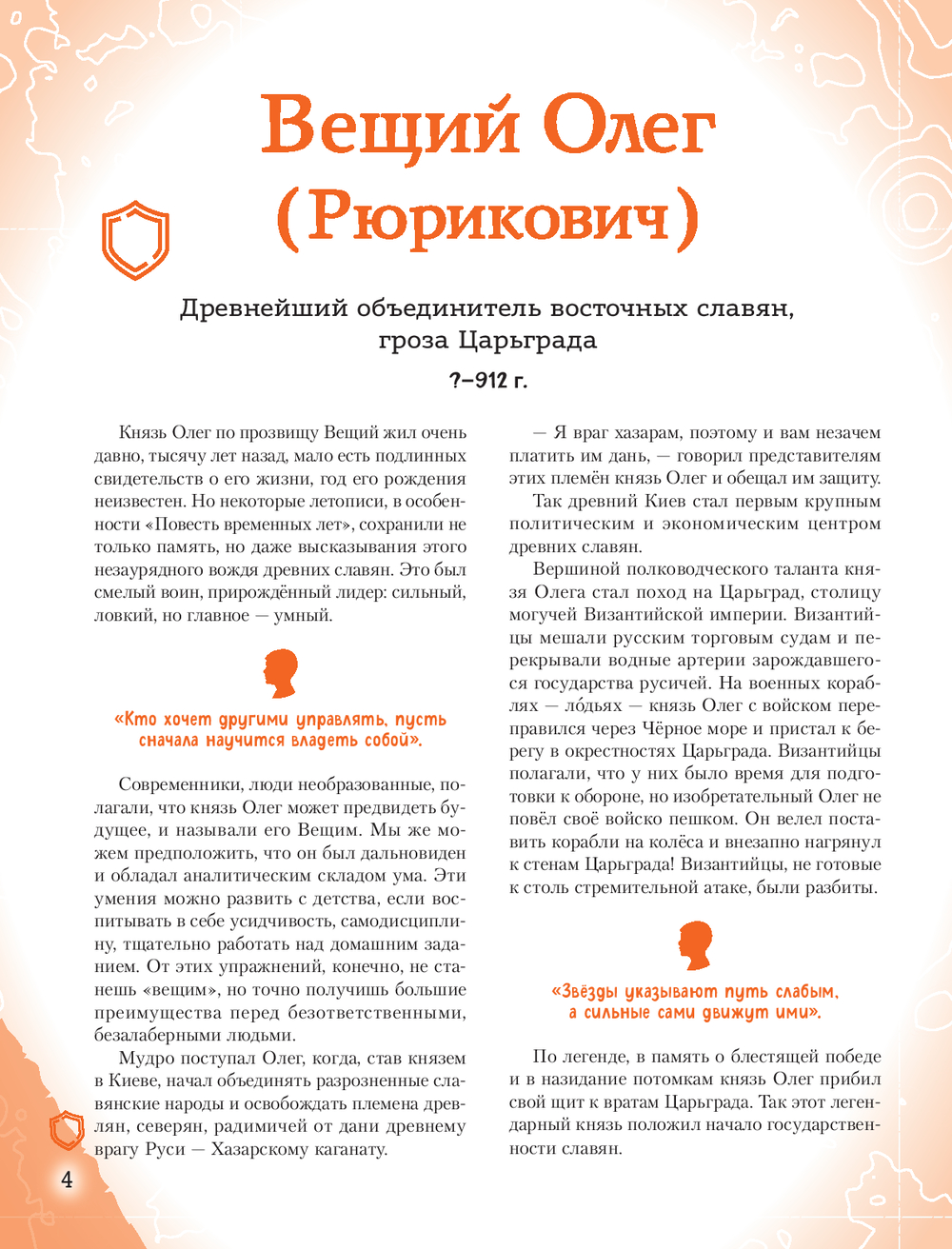 Захватывающие сюжеты в жанре нарративного нонфикшена, исторических "детективов" и "боевиков"! В каждом рассказе – вдохновляющая читателей на собственные свершения история успеха, невероятный пример силы воли и стойкости характера! Динамичные, запоминающиеся, современные, яркие иллюстрации созданы специально для этой книги!