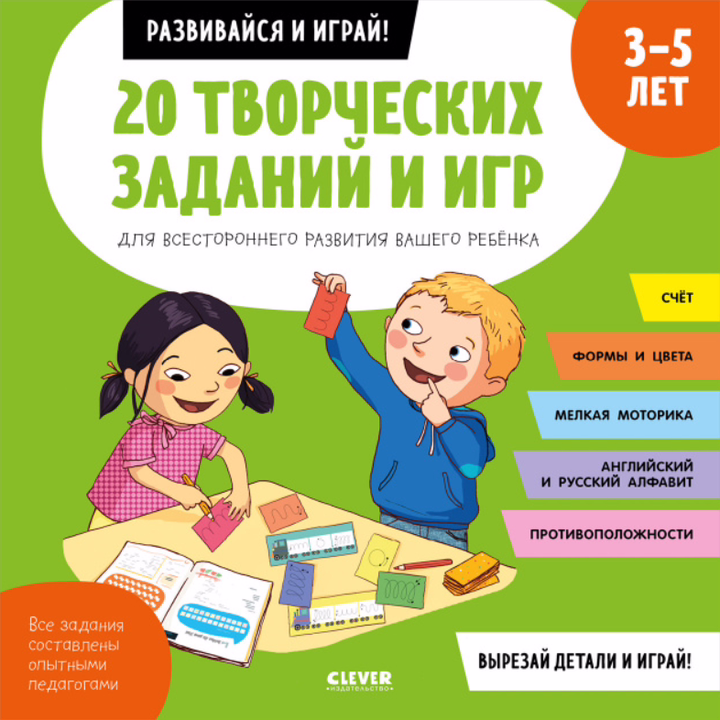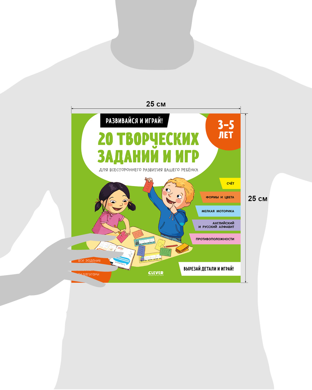 Тетрадь-активити "20 творческих игр и заданий для всестороннего развития вашего ребенка. 3-5 лет" позволит вам и ребенку провести время весело и с пользой. Играя, ребенок закрепит базовые навыки счета, выучит формы, английский алфавит и первые английские слова, разовьет словарный запас, математические способности, логическое и творческое мышление, кругозор.