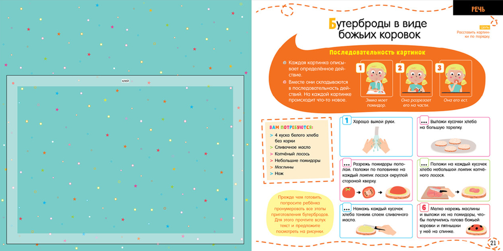 Вы сможете постоянно наблюдать за успехами ребенка, ведь на каждой странице указано, какие навыки развивает та или иная игра. Например, буквенное домино поможет запомнить английский алфавит, а карточки-половинки – научиться счету.