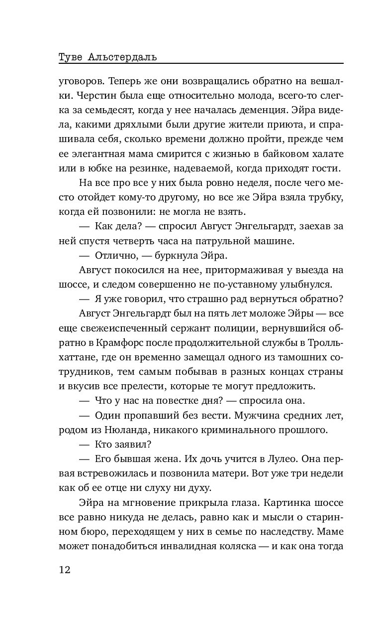 Что с ним произошло – загадка для местной полиции, поэтому к делу привлекают констебля Эйру Шьёдин. Никто не знает этот район и местных жителей лучше нее...