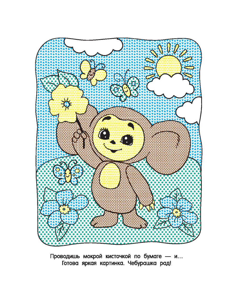 "Крокодил Гена и Чебурашка" – не обычная раскраска, а волшебная книжка для маленьких художников. Малыши узнают, что рисовать и раскрашивать можно не только карандашами, фломастерами или красками, но и водой. Проводишь мокрой кисточкой по бумаге – и перед тобой яркая картинка. Настоящее волшебство! Просто? Да! Весело? Ещё бы! И к тому же очень полезно: малыши отправляются в гости к героям любимого мультика, получают представление о форме и цвете, тренируют мелкую моторику и координацию движений. Техника водной раскраски настолько проста, что прекрасная картинка получится даже у самого маленького карапуза.