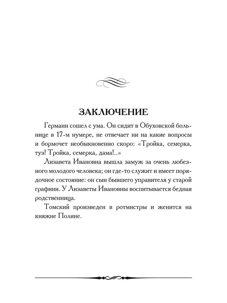 Благодаря детально прорисованным персонажам и атмосфере, "Пиковая дама" просто обязательна к прочтению любителям классической литературы. Яркие описания книги и мастерское повествование перенесут вас в прошлое. Независимо от того, являетесь ли вы закоренелым поклонником русской литературы или тем, кто ищет незабываемую историю, полную интриг, "Пиковая дама" – идеальное чтение. Итак, окунитесь в этот темный и завораживающий мир и узнайте, почему эта книга стала классикой мировой литературы. Также повесть входит в школьную программу. Учитесь вместе с нами!