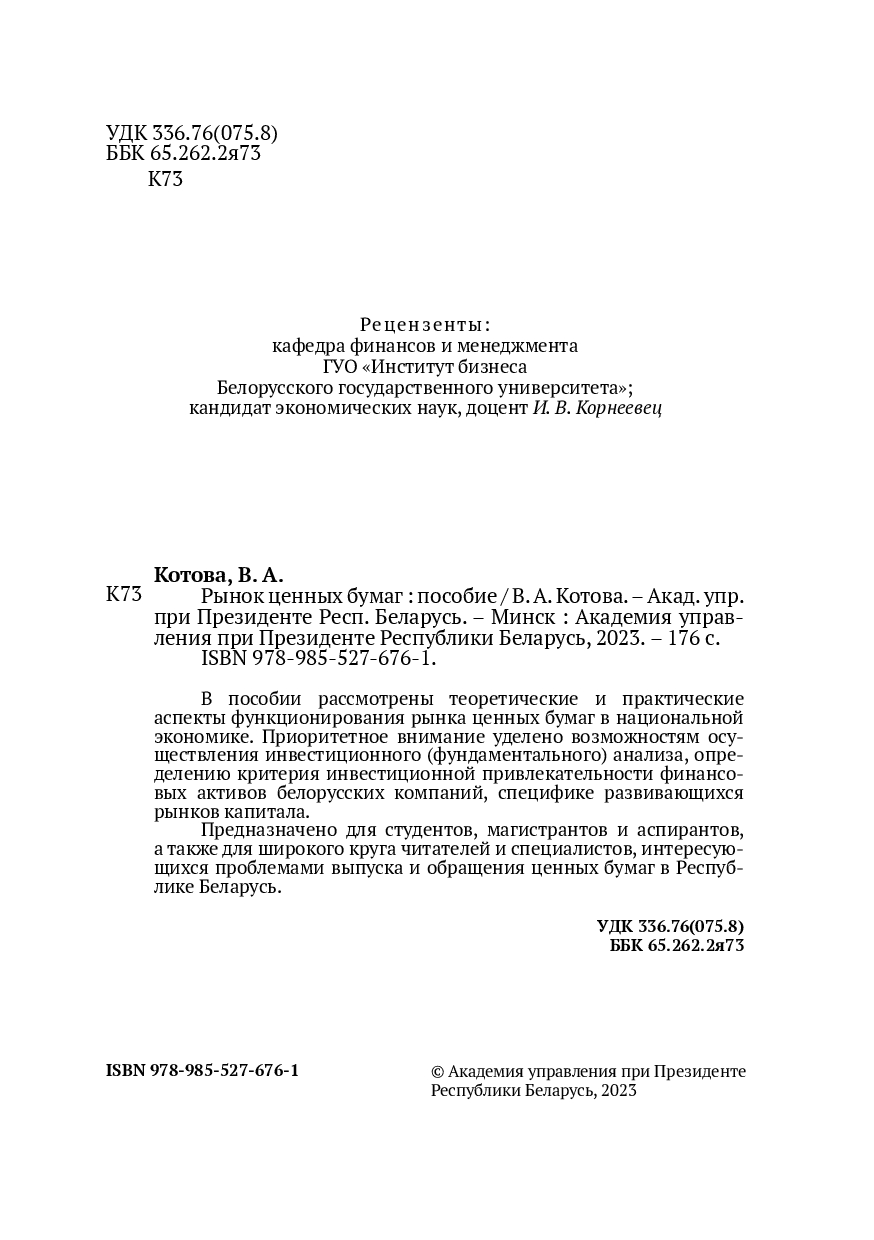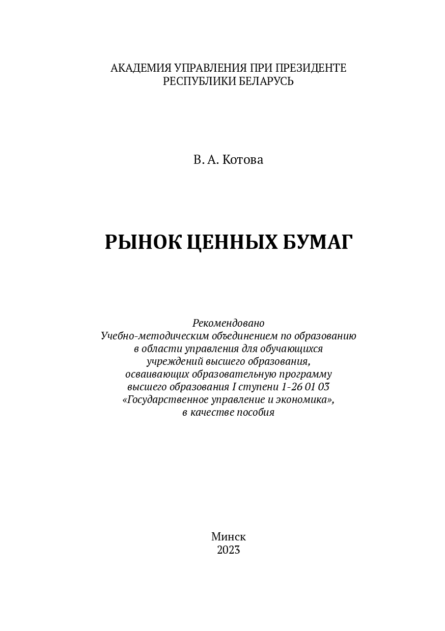 Предназначено для студентов, магистрантов и аспирантов, а также для широкого круга читателей и специалистов, интересующихся проблемами выпуска и обращения ценных бумаг в Республике Беларусь.