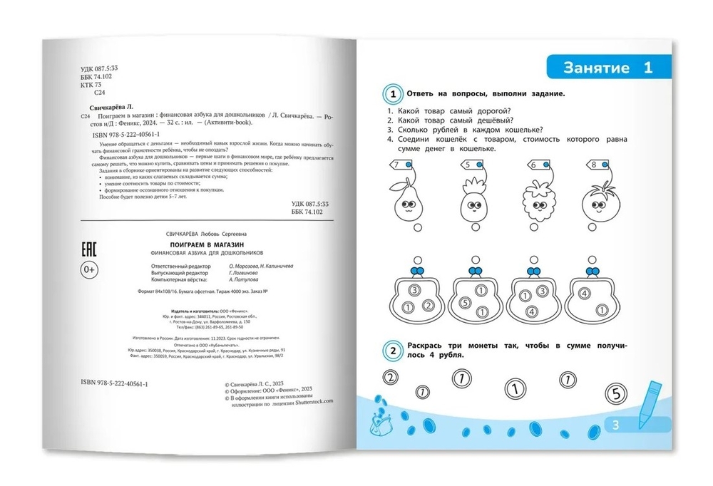 Финансовая азбука для дошкольников – первые шаги в финансовом мире, где ребёнку предлагается самому решать, что можно купить, сравнивать цены и принимать решения о покупке.