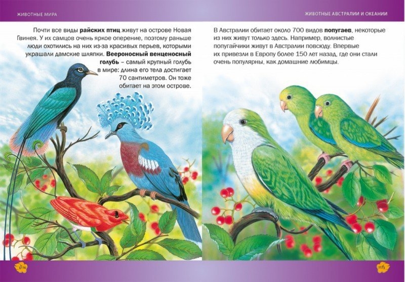 Ты живёшь на удивительной планете, где обитает множество необыкновенных животных и птиц. Они населяют её повсюду: в лесах и горах, степях и джунглях, пустынях и морских водах. На страницах нашей красивой энциклопедии ты узнаешь много интересных фактов о самых разных животных: ловких ягуарах и грозных касатках, добродушных пандах и смешных шимпанзе, красивых фламинго и грациозных ланях.