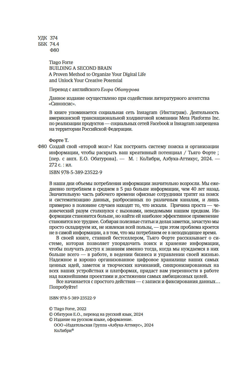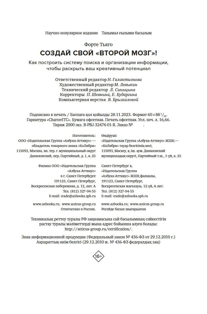 | Название в оригинале | Building a Second Brain. A Proven Method to Organize Your Digital Life and Unlock Your Creative Potential |