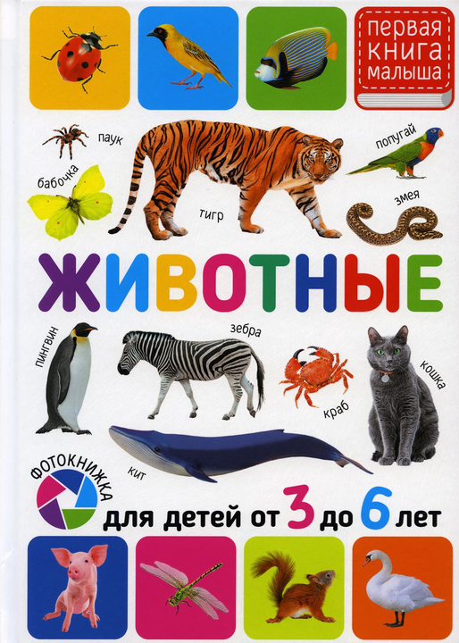 Предлагаем вашему вниманию фотокнигу "Животные. Для детей от 3 до 6 лет" из развивающей серии "Первая книга малыша", которая познакомит вашего ребёнка с увлекательным миром животных: от жителей лесов, гор и джунглей до обитателей пустынь, саванн и водных просторов, а яркие реалистичные фотографии помогут ему в этом. Кроме того, в игровой форме "вопрос-ответ" вы сможете закрепить у ребёнка полученные знания.