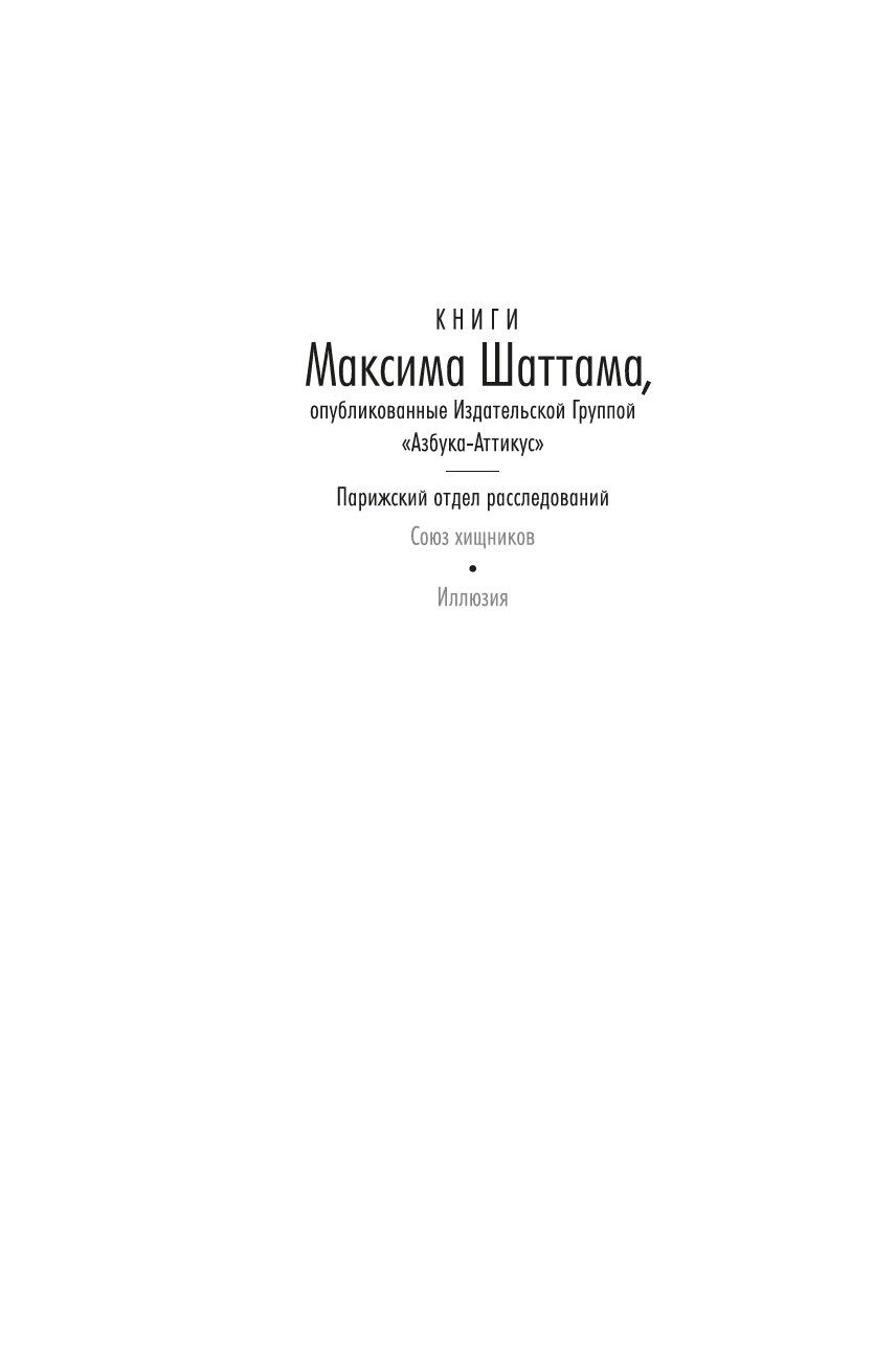 Максим Шаттам – автор детективных триллеров и нуаров, которые расходятся многомиллионными тиражами во Франции и стали бестселлерами еще в двух десятках стран. Шаттам изучал современную литературу и криминологию, поначалу вдохновлялся Стивеном Кингом и Томасом Харрисом, а в итоге стал во французской детективной литературе фигурой, ни в чем не уступающей Жан-Кристофу Гранже и Франку Тилье. Его новый триллер "Иллюзия" постепенно и неотвратимо заводит читателя все дальше в беспросветный лабиринт, где за каждым углом таятся чудовища и все новые ловушки, а выхода к свету, возможно, и вовсе нет.