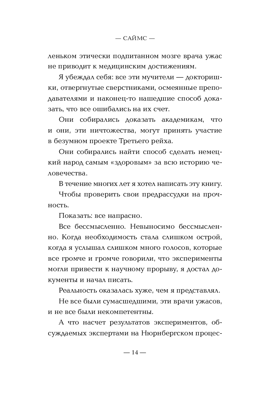 Ужасающие истории о тех, кто проводил эксперименты, заставляющие стынуть в жилах кровь. Мишель Саймс, практикующий врач и популярный ведущий медицинских программ, предоставляет доказательства этих бесчеловечных деяний, поименно называя тех, кто руководил, мучил, уничтожал.