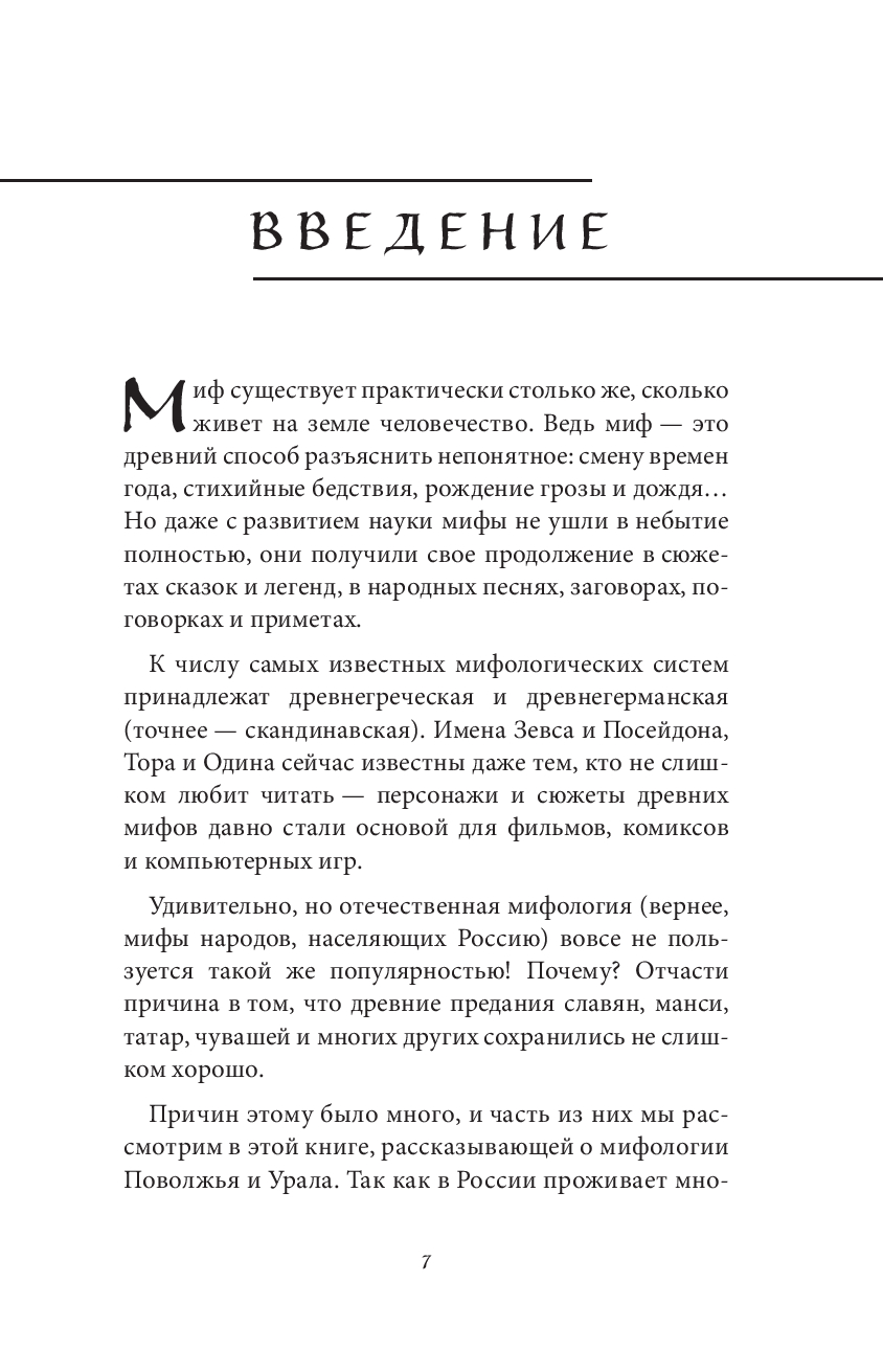 Перед вами книга о мифах, легендах и традициях коренных народов Урала и Поволжья – русских, татар, чувашей, марийцев, манси, мокшан и эрзян. Вас ждут удивительные истории о зиланте и шайтане, деревянных и глиняных людях, богатырях и оборотнях, волшебных заклинаниях и зельях. Откройте для себя сказания о медвежьей силе и змеиной мудрости, богах лесов и снегов и узнайте больше о культурном богатстве России!