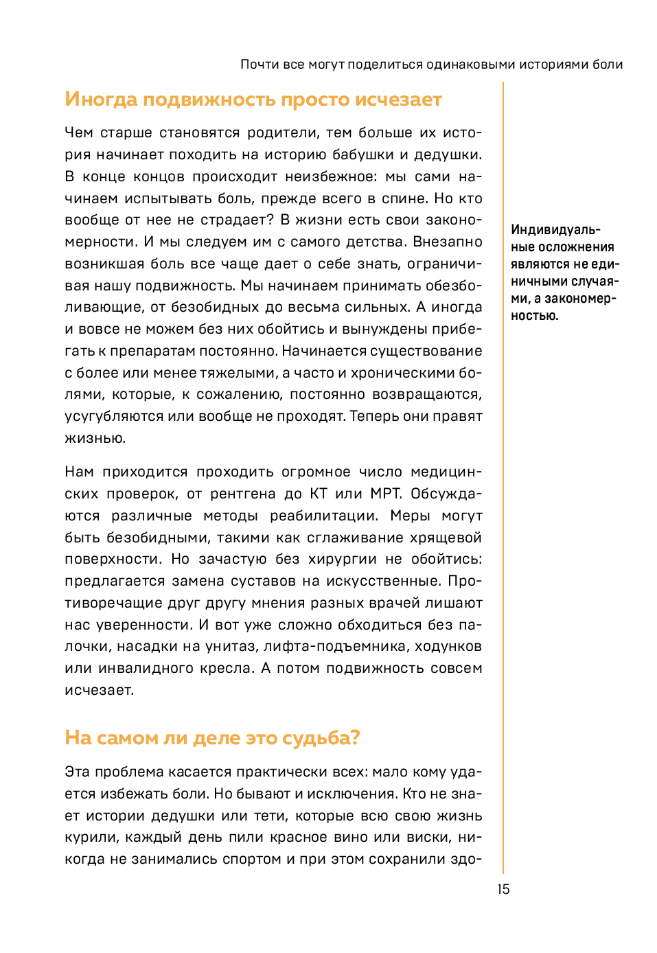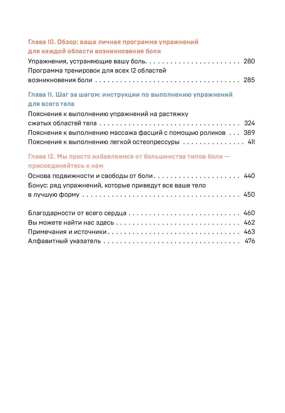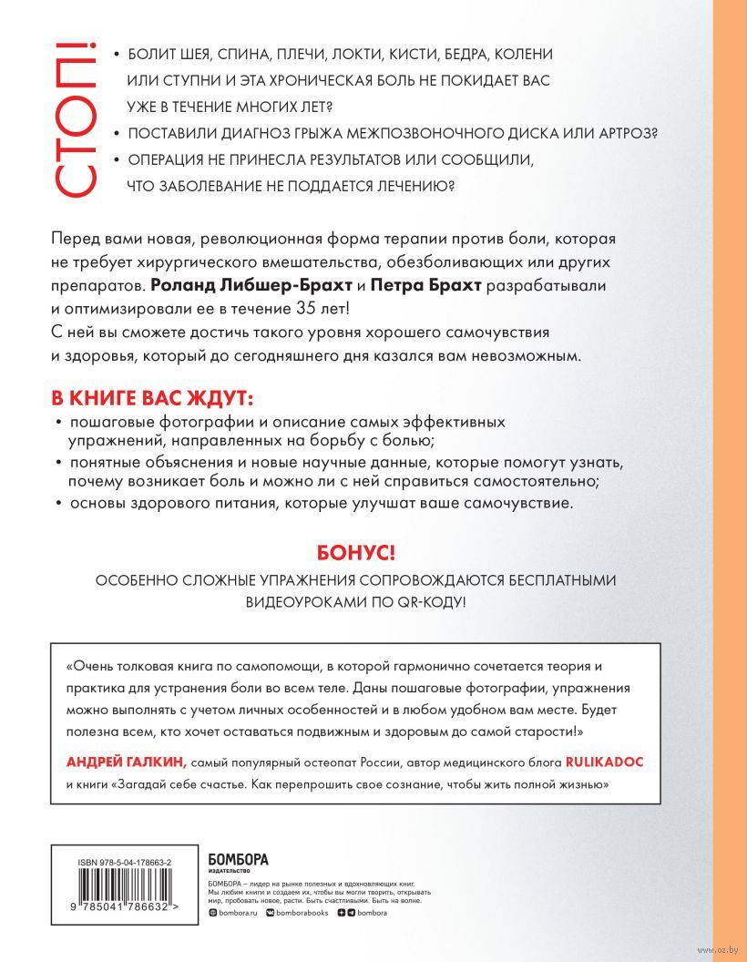 В книге вас ждут: пошаговые фотографии и описание самых эффективных упражнений, направленных на борьбу с болью; понятные объяснения и новые научные данные, которые помогут узнать, почему возникает боль и можно ли с ней справиться самостоятельно; основы здорового питания, которые улучшат ваше самочувствие.