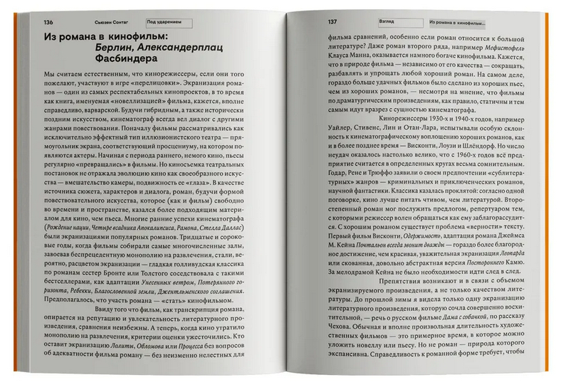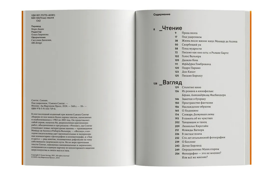 В этот последний изданный при жизни Сьюзен Сонтаг сборник ее эссе вошло более сорока текстов, написанных и опубликованных с 1982 по 2001 год. Он представляет собой серию, казалось бы, разрозненных критических работ, объединенных в три раздела: "Чтение", где Сонтаг утверждает новые литературные каноны – произведения Машаду де Ассиза и Роберта Вальзера, – "Взгляд", в котором писательница дает проницательные и экспрессивные комментарии о фотографии и кинематографе, и "Там и здесь" – ряд заметок, посвященных рефлексии на тему собственного творческого пути. Но по мере прочтения тексты Сонтаг, неизменно эмоциональные и лирические, складываются в единую картину ее неповторимого видения мира искусства и своего места в нем.