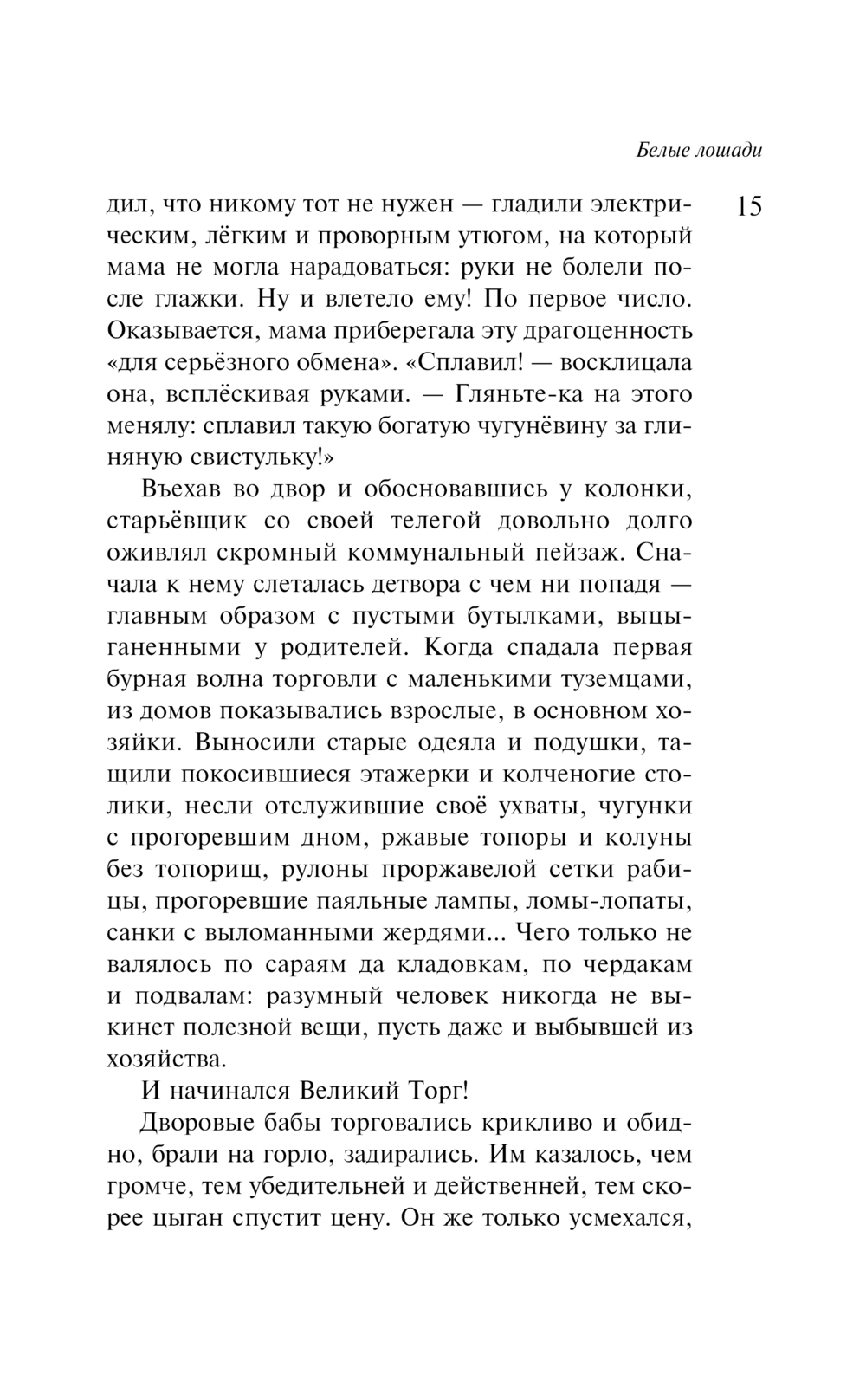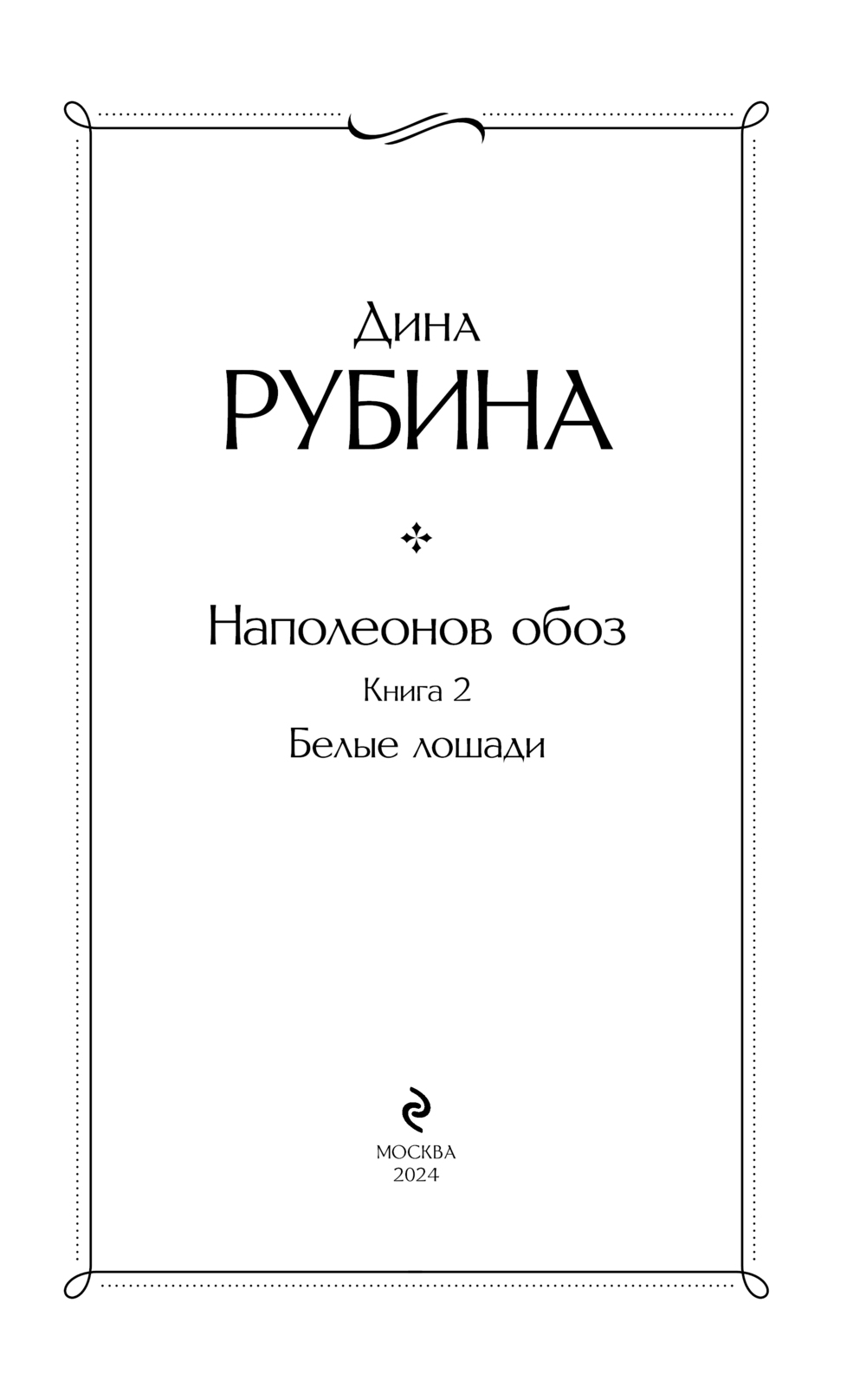 Вторая книга романа "Наполеонов обоз" – "Белые лошади" – затягивает читателя в воронку любви и предательства, счастья и горя двух главных героев – Аристарха и Надежды. За короткий срок на них обрушивается груз сильнейших потрясений, которые не часто и не всем выпадают в юности. Сильные, цельные натуры, оба они живут на такой высоте чувств, которая ничего не прощает. Судьба буквально расшвыривает в разные стороны двух влюблённых. Каждый из них теперь идет своим отдельным путем, оставаясь навсегда глубоко одиноким, раненым душевно.