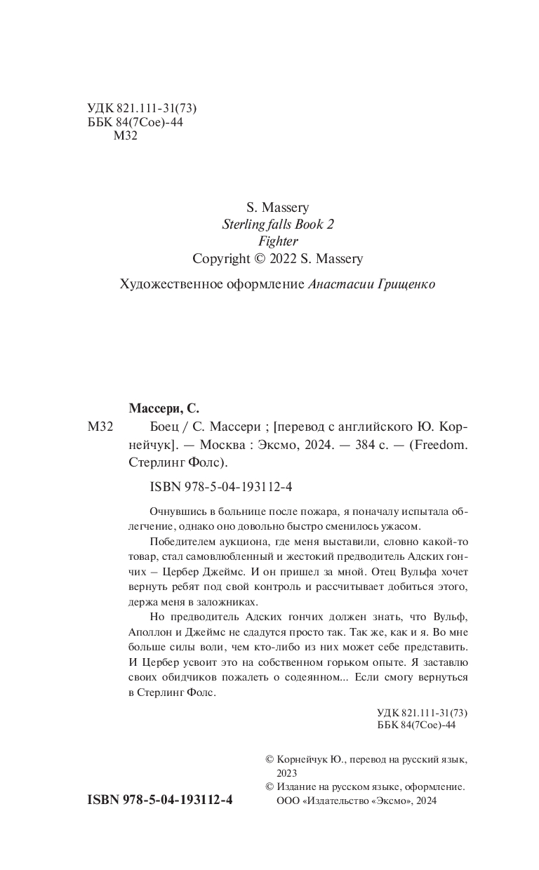 | Изготовитель | ООО "Издательство "Эксмо", 123308, город Москва, улица Зорге, дом 1, строение 1, этаж 20, каб 2013 |