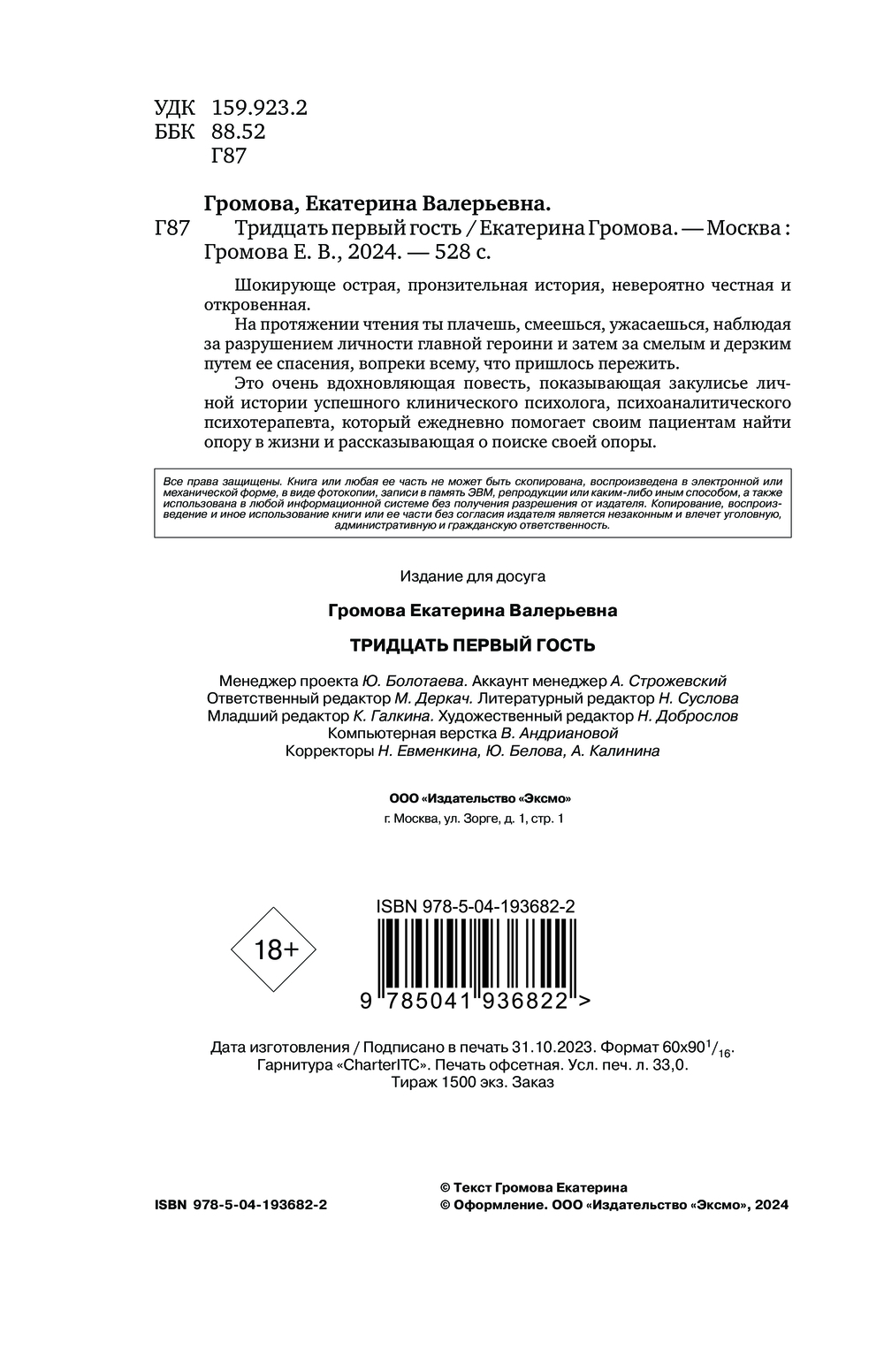 | Изготовитель | ООО «Издательство «Эксмо». РФ, г. Москва, ул. Клары Цеткин, 18, корп. 5 |