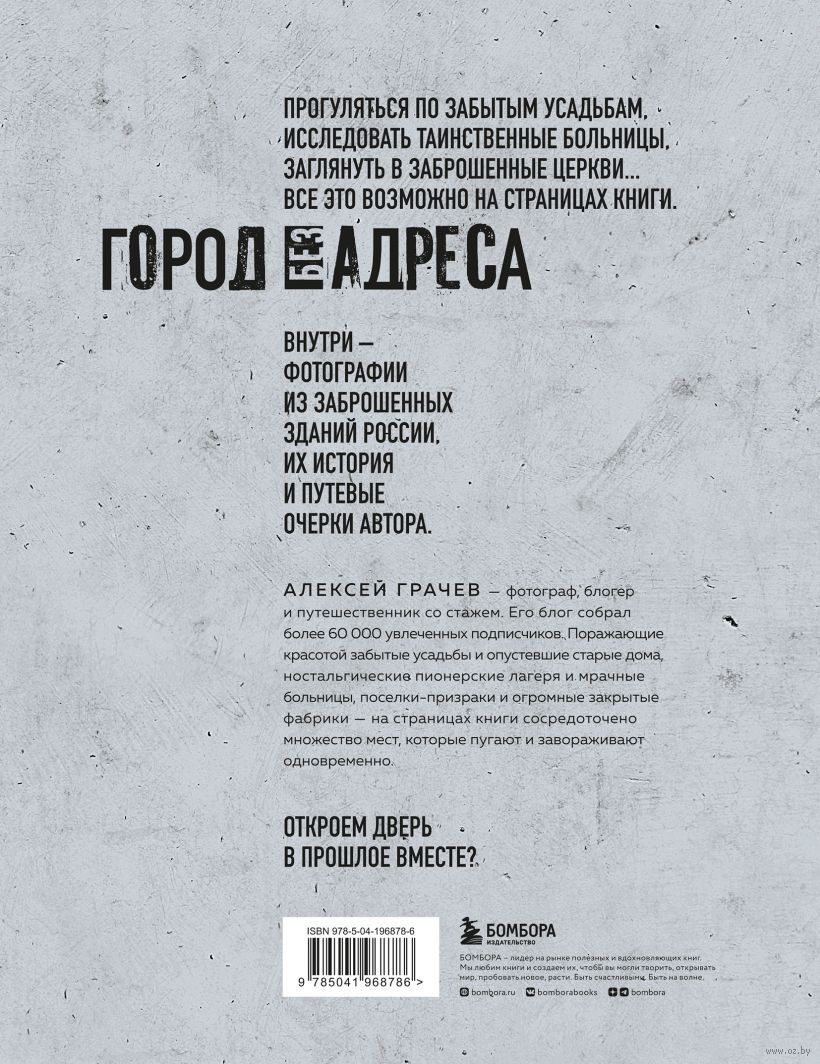 На страницах книги вас ждут невероятные фотографии таких-то локаций, которые пугают и завораживают одновременно. Автор книги, фотограф и автор популярного блога Алексей Грачев поделится путевыми заметками и расскажет забытую историю поселков-призраков и закрытых фабрик.