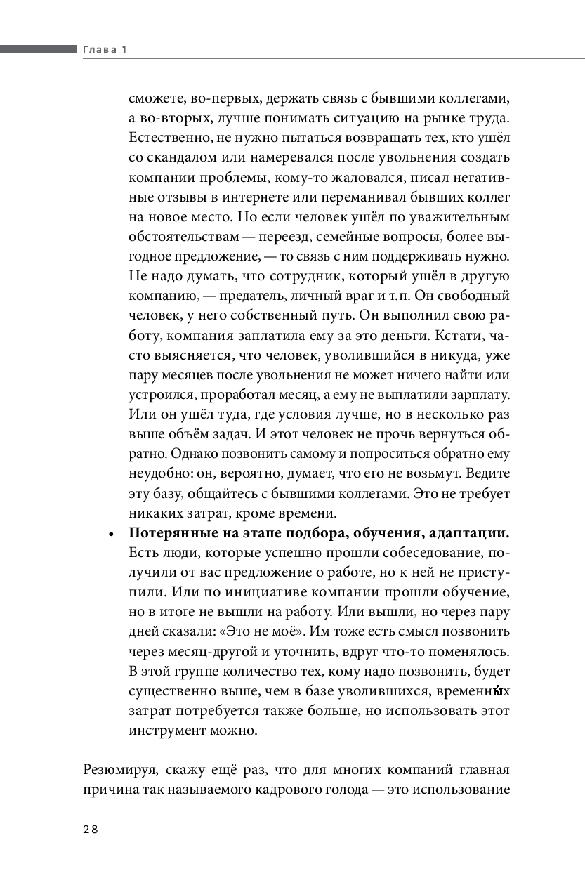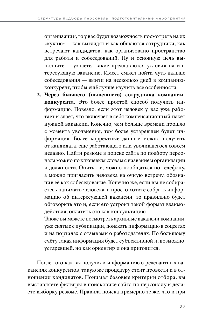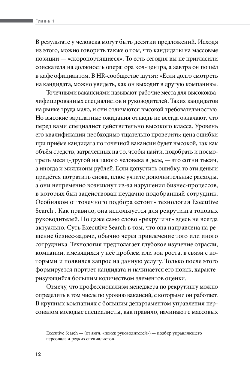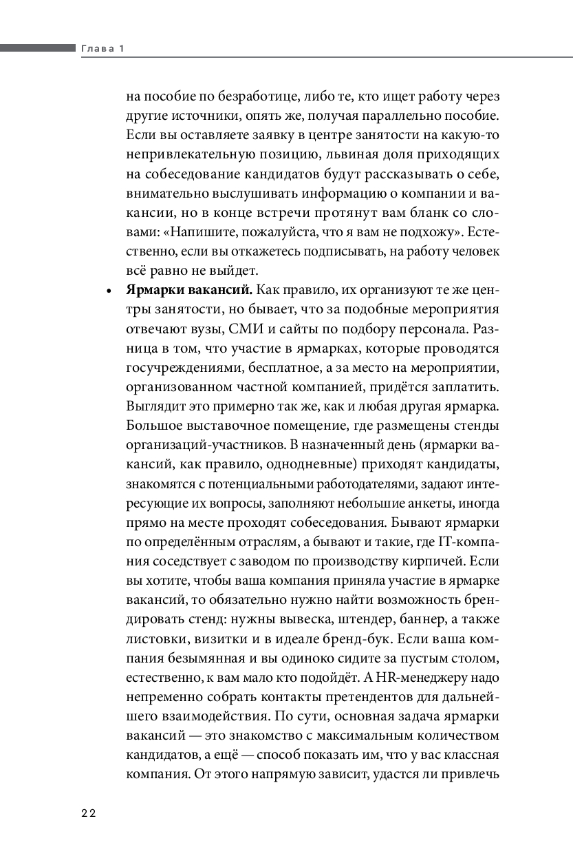 Автор уверен, что все этапы подбора персонала тесно взаимосвязаны и образуют большую единую систему, поэтому поиск кандидата важно начинать не с размещения вакансии, а с формулировки задачи от заказчика и заканчивать не в первый рабочий день нового сотрудника, а минимум через полгода после завершения испытательного срока.