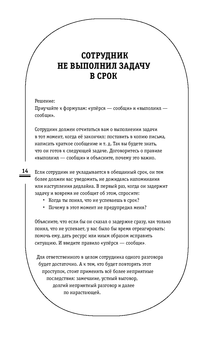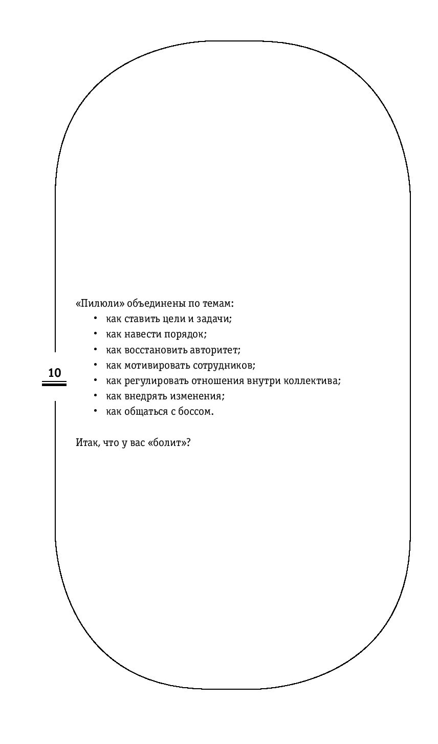 Перед вами настоящая "аптечка" для руководителя – набор "пилюль", который поможет не только повысить эффективность, но и наладить отношения в коллективе. Автор разбирает самые проблемные сферы: потеря авторитета, токсичная атмосфера, недобросовестное выполнение работ и игнорирование поставленных целей.