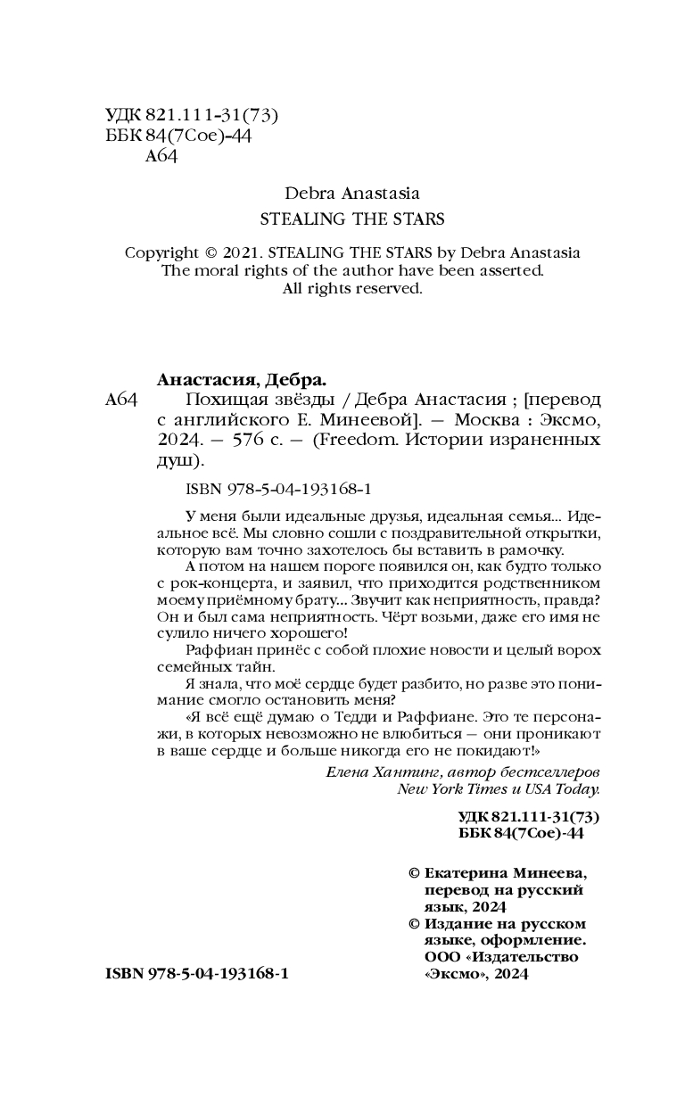 | Изготовитель | ООО "Издательство "Эксмо", 123308, город Москва, улица Зорге, дом 1, строение 1, этаж 20, каб 2013 |