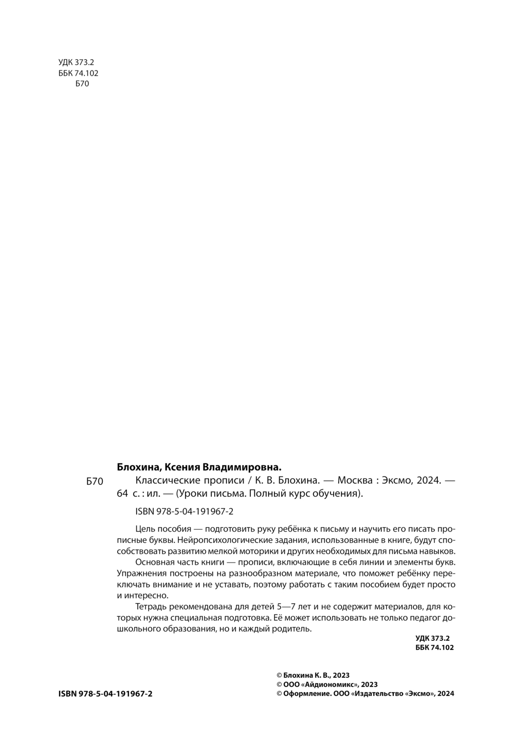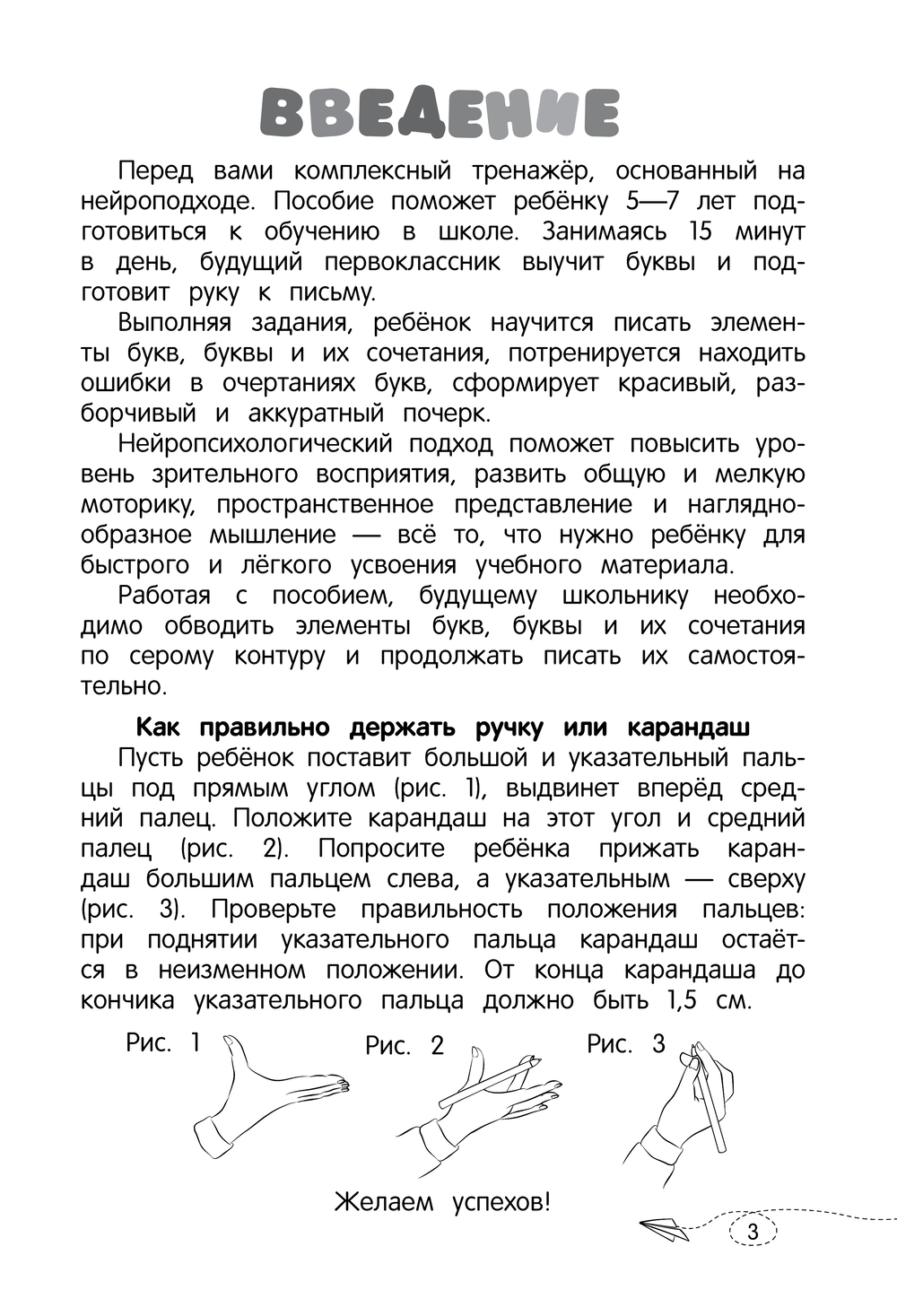 Пособие предназначено для детей, готовящихся к поступлению в школу, и представляет собой прописи, в которых использованы как традиционные задания, так и нейропсихологические упражнения для обучения и развития дошкольника.