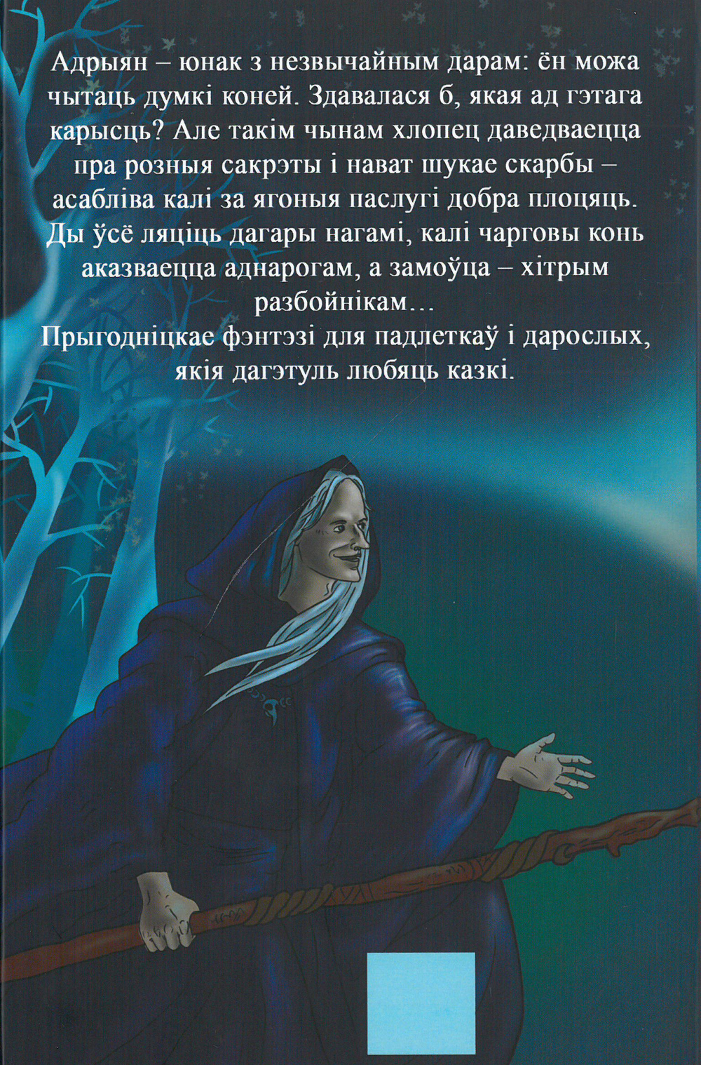 Адрыян – юнак з незвычайным дарам: ён умее чытаць думкі коней. Здавалася б, ад такога ўмення карысці няшмат. Але менавіта ад коней хлопец даведваецца пра чужыя сакрэты. Адрыян ведае, як адшукаць скарбы, і чакае, што яму за гэта добра заплоцяць. Аднак усё ляціць дагары нагамі, калі чарговы конь аказваецца аднарогам, а ўамоўца – хітрым разбойнікам...