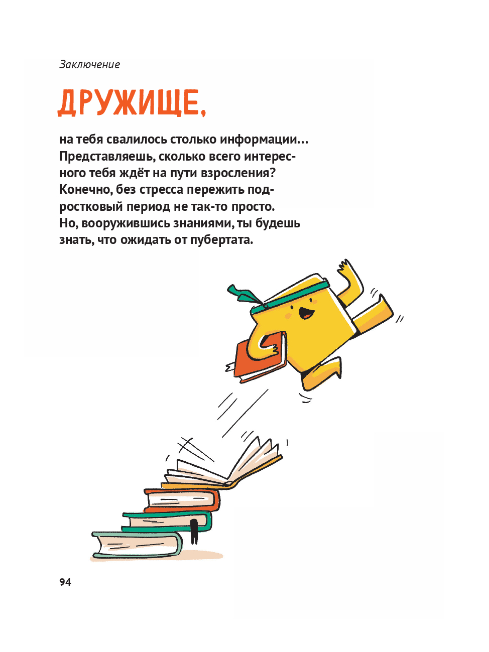 Нас не пугает то, что понятно и предсказуемо. Прочитав книгу, ребёнок поймёт, что взросление – это нормально и естественно, обсуждать это (и, например, задавать волнующие вопросы близким взрослым) – не стыдно. Понимание происходящих процессов помогает ощущать себя увереннее и спокойнее.